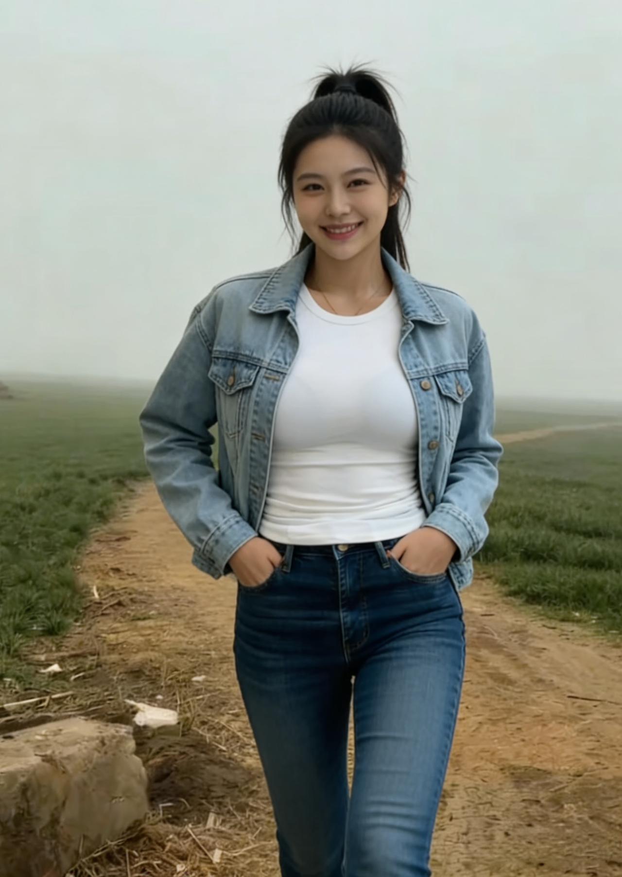 《梦回故乡》 草尖顶着雾霭生长 像她领口漏出的纯白 干净而又倔强 牛仔外套裹着少年气 也裹着土地里长出的温柔 ~ 她站在路的中央 像一株刚拔节的稻秧 把旷野的辽阔 揉进眼底的光芒 让风,成为美丽的偏旁