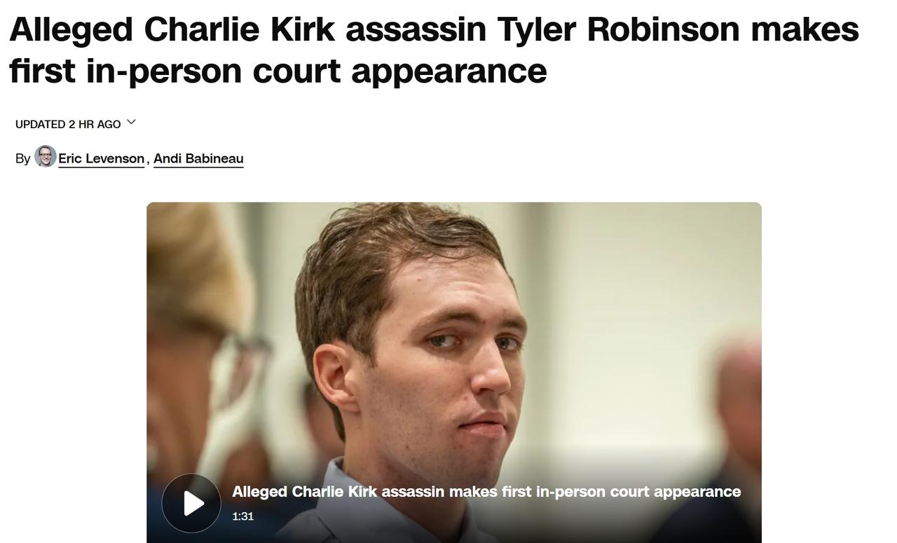 刺杀查理·柯克的嫌疑人首次出庭 当地时间周四,被控枪杀保守派政治活动家查理·柯克,22岁的泰勒·罗宾逊自被捕以来首次亲自出庭犹他州法院。 镜头中的罗宾逊身穿浅蓝色衬衫、条纹领带和卡其裤,与他的律师交谈。罗宾逊被指控犯有严重谋杀罪和使用枪支重罪,以及妨碍司法公正、干扰证人和在儿童在场的情况下实施暴力犯罪。 泰勒·罗宾逊尚未对指控作出认罪。 罗宾逊在枪击事件发生的第二天向警方自首。他之前的公开法庭出庭均以视频或音频形式进行。 此次的听证会重点关注透明度和公众对案件的可及性。