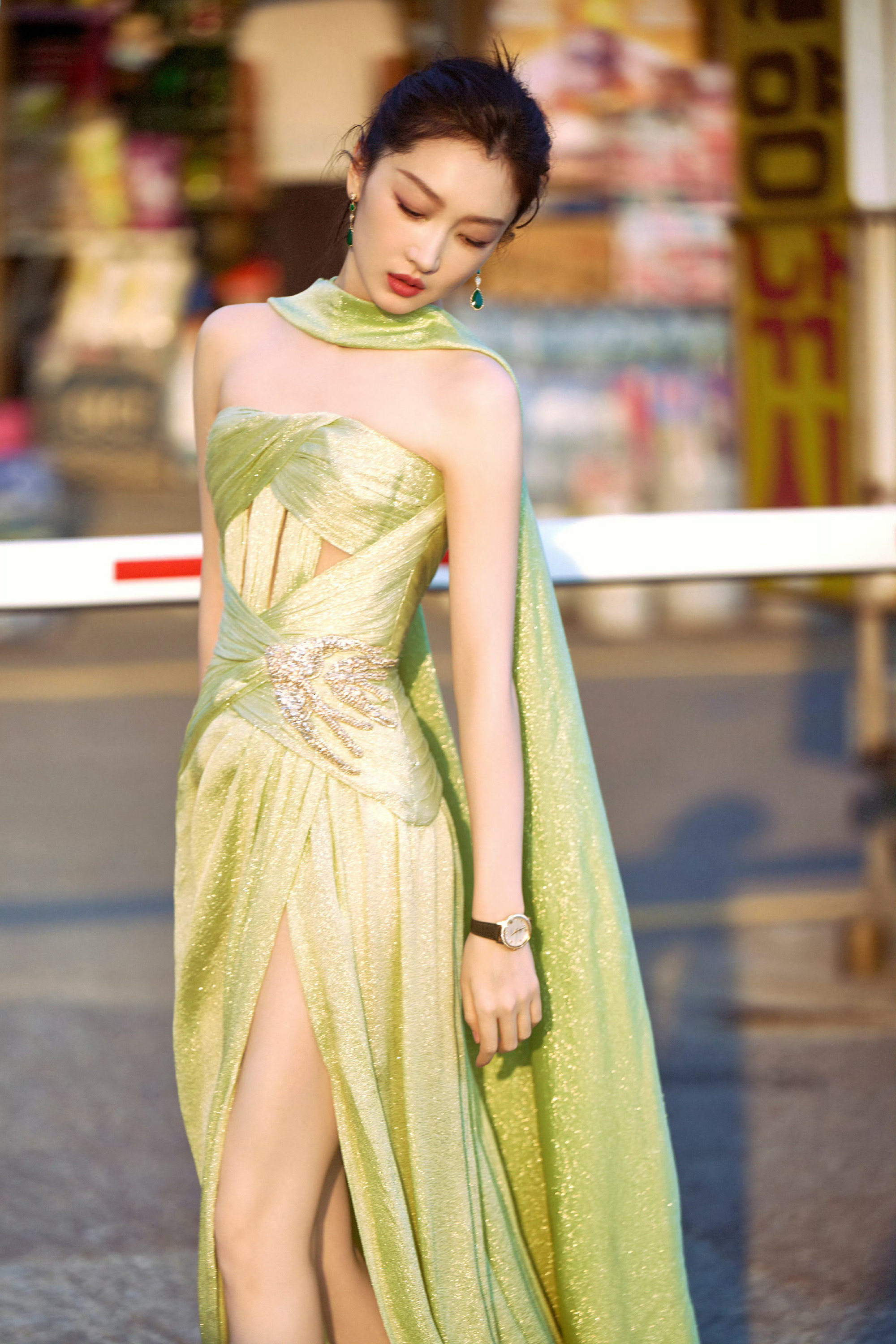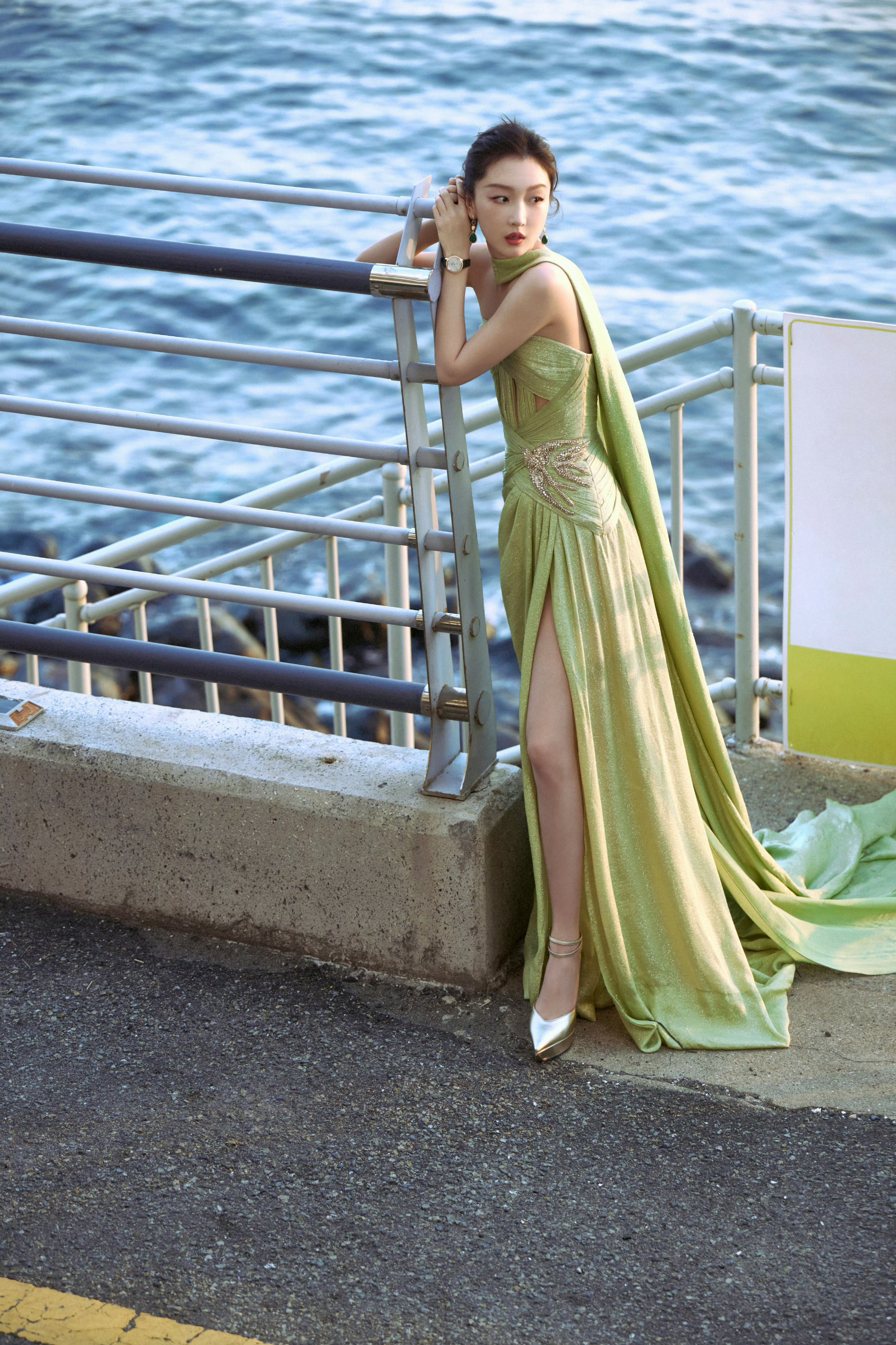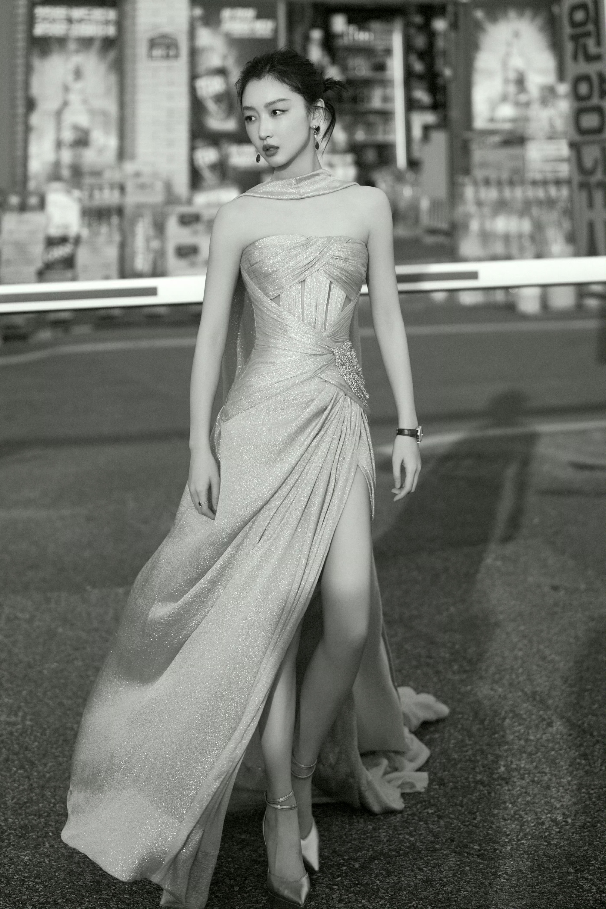 周冬雨,釜山电影节闭幕式造型,街角里的金色浪漫。周冬雨