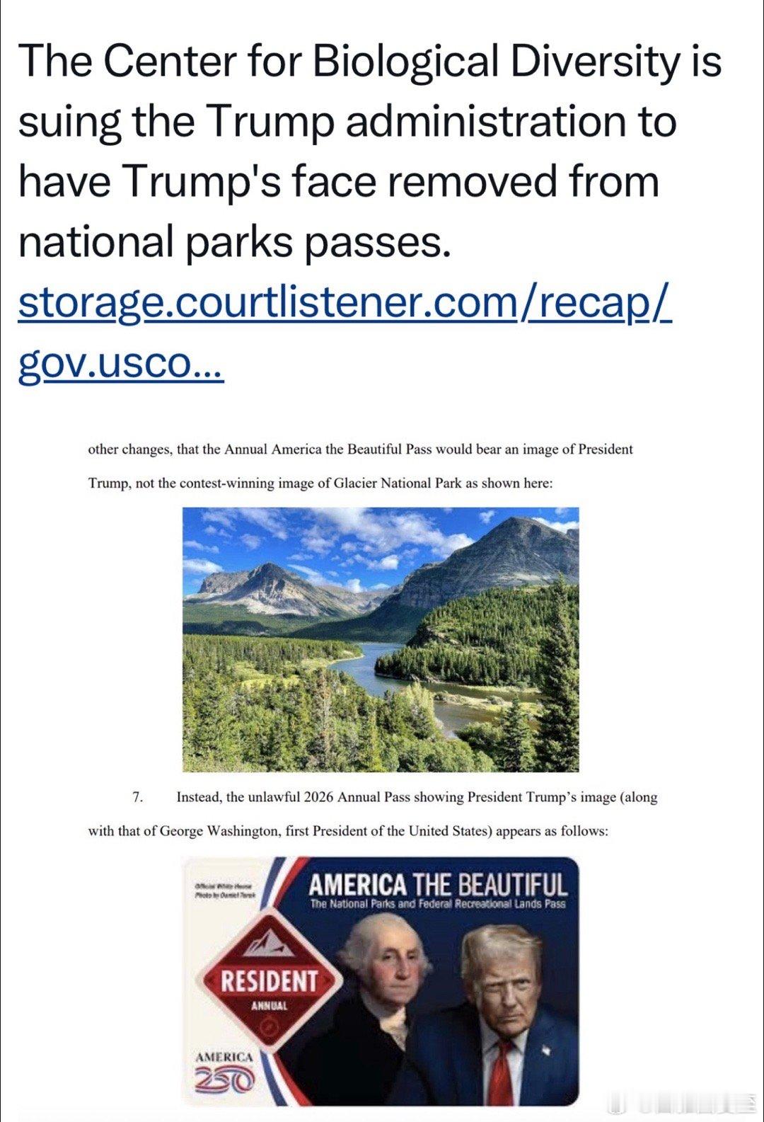 美国2026国家公园年票,印有美国首任总统和现任总统头像环保组织状告政府:根据法律,必须是民众选出的优秀摄影作品
