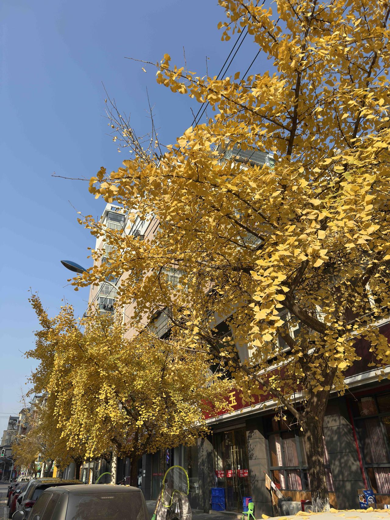 银杏树,被称为植物界的大熊猫,是现存最古老的树种之一,可见它的稀有。 这条街道,两边都栽种着银杏树,每到这个时节,银杏树的叶子金黄金黄的,在阳光的照射下,在微风中,一片一片扇形的银杏树叶翩翩起舞,簌簌地往下掉,成了一道亮丽的风景。 以前住在乡下时,很难得见到银杏树。最早见过的银杏树,是北京的银杏树。那年去北京旅游,走过一个公园,公园里就有一片银杏林,十一月初的北京,银杏树叶已呈现出一片金黄,树下是一层厚厚的银杏叶,我当时还特意捡了两片银杏叶,带回家做书签,捡了两个银杏果带回家研究能不能吃。