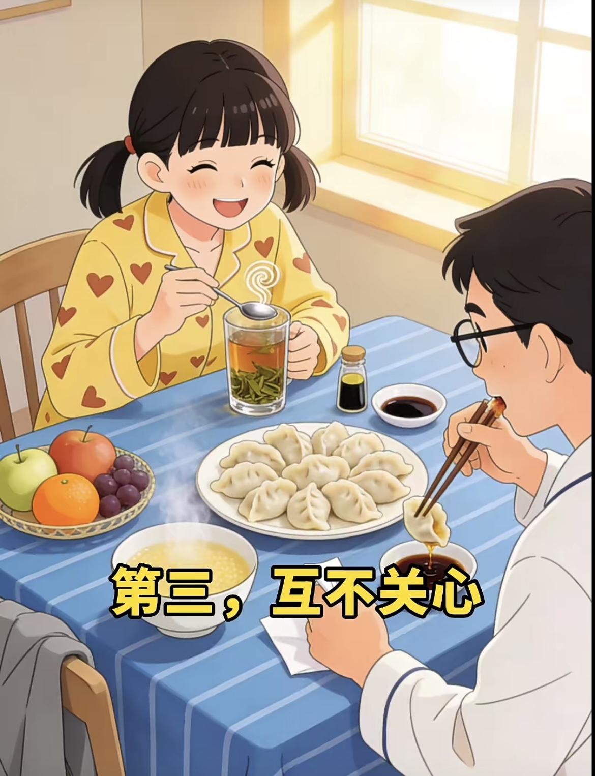 夫妻走到尽头的八个信号,占了一半就该警惕了 1. 分房睡,亲密感逐渐消失 2. 同处一室却零交流,成了最熟悉的陌生人 3. 对彼此的生活漠不关心,没了牵挂与在意 4. 夫妻生活缺席,身体与心灵都渐行渐远 5. 经济各自独立,赚钱自己花,没了共同的生活规划 6. 看到对方就心生厌烦,连眼神交流都觉得多余 7. 刻意躲着彼此,打心底里不想见面 8. 宁愿在外漂泊,也不想回到有对方的家 你们家的感情处在什么状态……