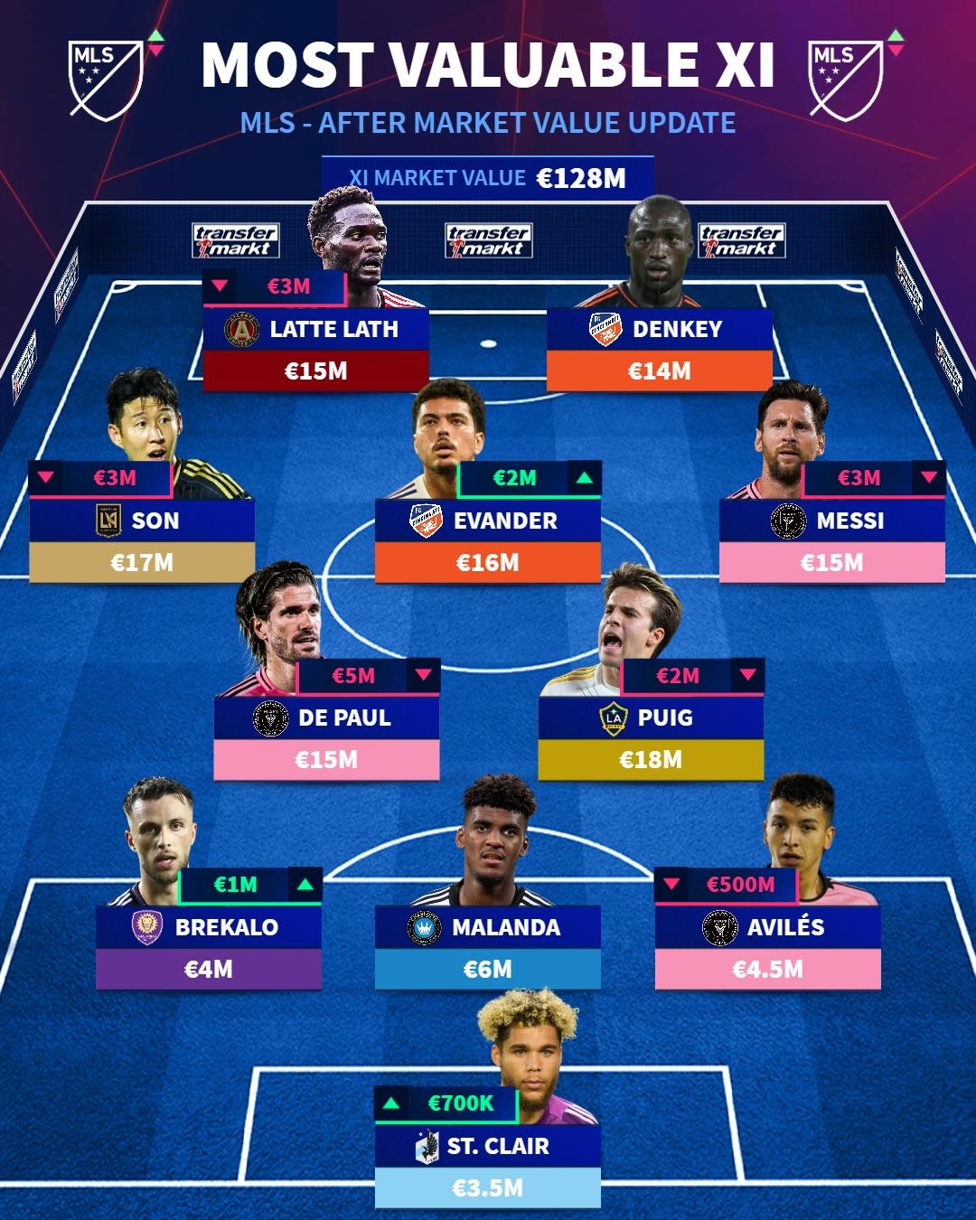 前锋:孙兴慜(1700万欧,洛杉矶FC)、拉特拉什(1500万欧,亚特兰大联)、丹基(1400万欧,辛辛那提FC)、梅西(1500万欧,迈阿密国际)