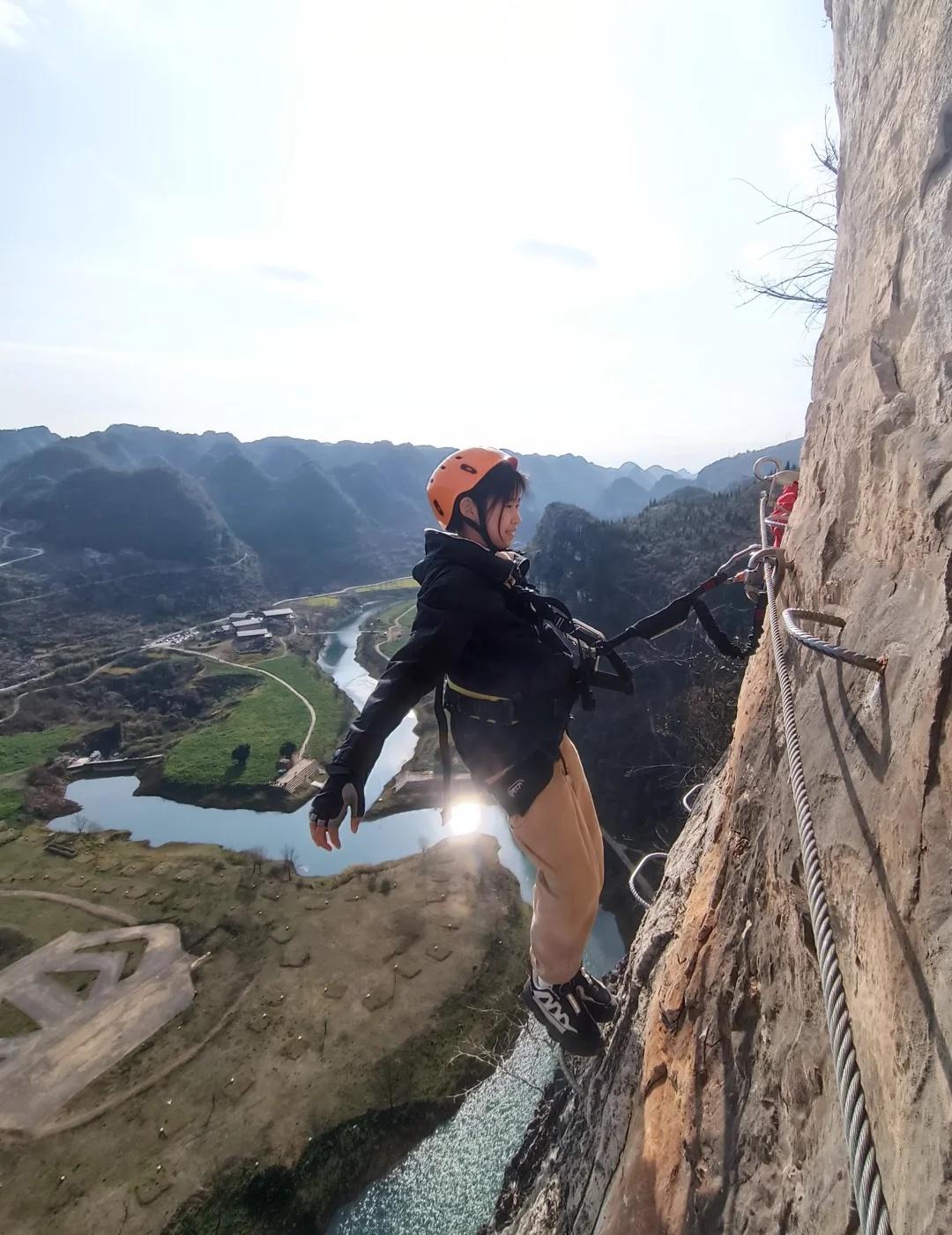 看 她在悬崖上面玩绳索! 想象张开手臂,山风从耳边呼啸而过 突然觉得:那些 KPI、会议、人际关系 在山野面前根本不算什么! 是不是平时被工作追着跑,一到周末就只想瘫 但又觉得 “虚度光阴” 好焦虑… 不妨来贵州黔西南玩飞拉达,淡季真香了! 系上绳索,脚踩岩壁支点 身下是碧绿湖水、蜿蜒小路, 远处青山像波浪一样铺到天边~ 攀岩的时候,脑子只有 “踩稳这块石头” “抓牢这个钢索”,所有杂念都被清空, 这种专注又刺激的感觉,比躺一天还解压 而且拍出来的照片也好绝~ 现在终于懂了,化解焦虑不是躺平, 而是去做一些 “跳出日常” 的事, 让山野把烦恼都吹走~ 玩累了直接住进悬崖酒店 超大的落地玻璃窗,把万峰框进眼底 美不胜收~~ 还有极限越野车、徒步探洞、皮划艇、真人CS 真的是户外天堂 贵州旅游 飞拉达选方麦斯 攀岩 户外徒登山 极限运动 贵州度假 贵州亲子游 贵州酒店推荐