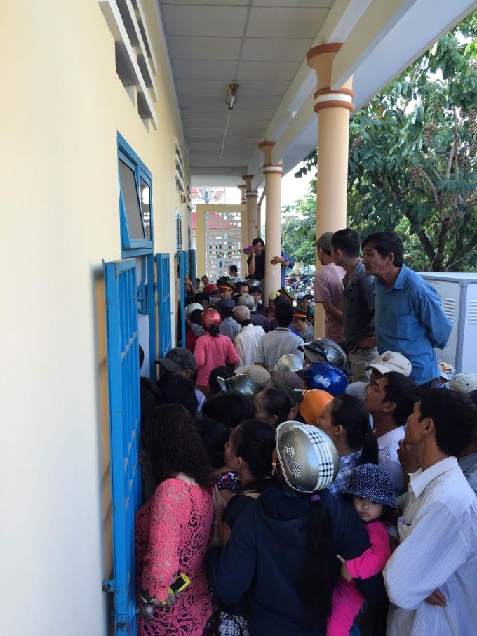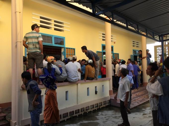 越南的法庭庭审情况,引来大量群众围观 审讯案件谋杀了一名退役陆军上尉,