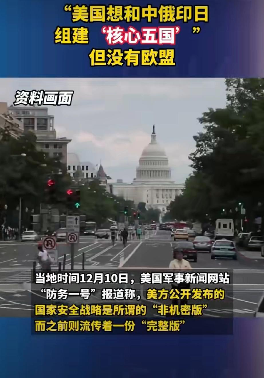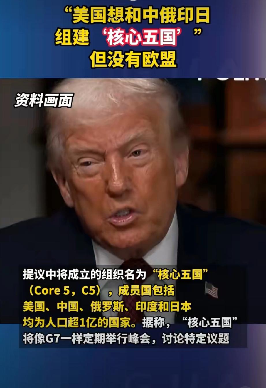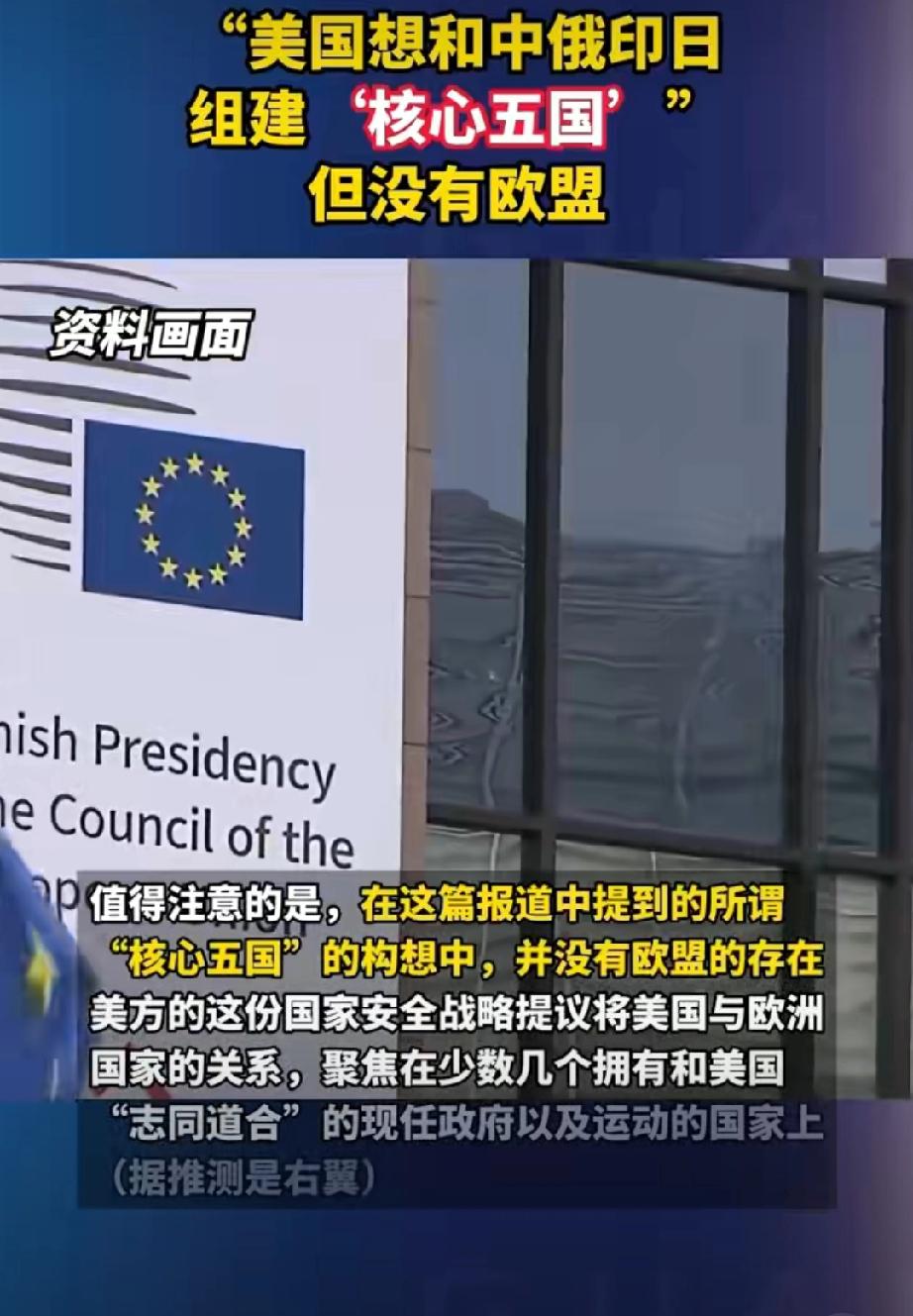 美国要组“核心五国”,中俄印日在列,欧盟被踢出局…… 最近有消息说,美国在一份未公开的国家安全战略里,想拉着中国、俄罗斯、印度、日本组建一个“核心五国”(C5)新组织,专门讨论全球大事。 最让人意外的是,这个新圈子里没有欧盟! 这波操作被解读为美国想跳出G7的条条框框,同时把战略重心从中东和欧洲移开。 不过,白宫已经否认了这份文件的存在,俄罗斯也说没收到邀请,所以这事儿到底是真心还是试探,还得打个大大的问号。