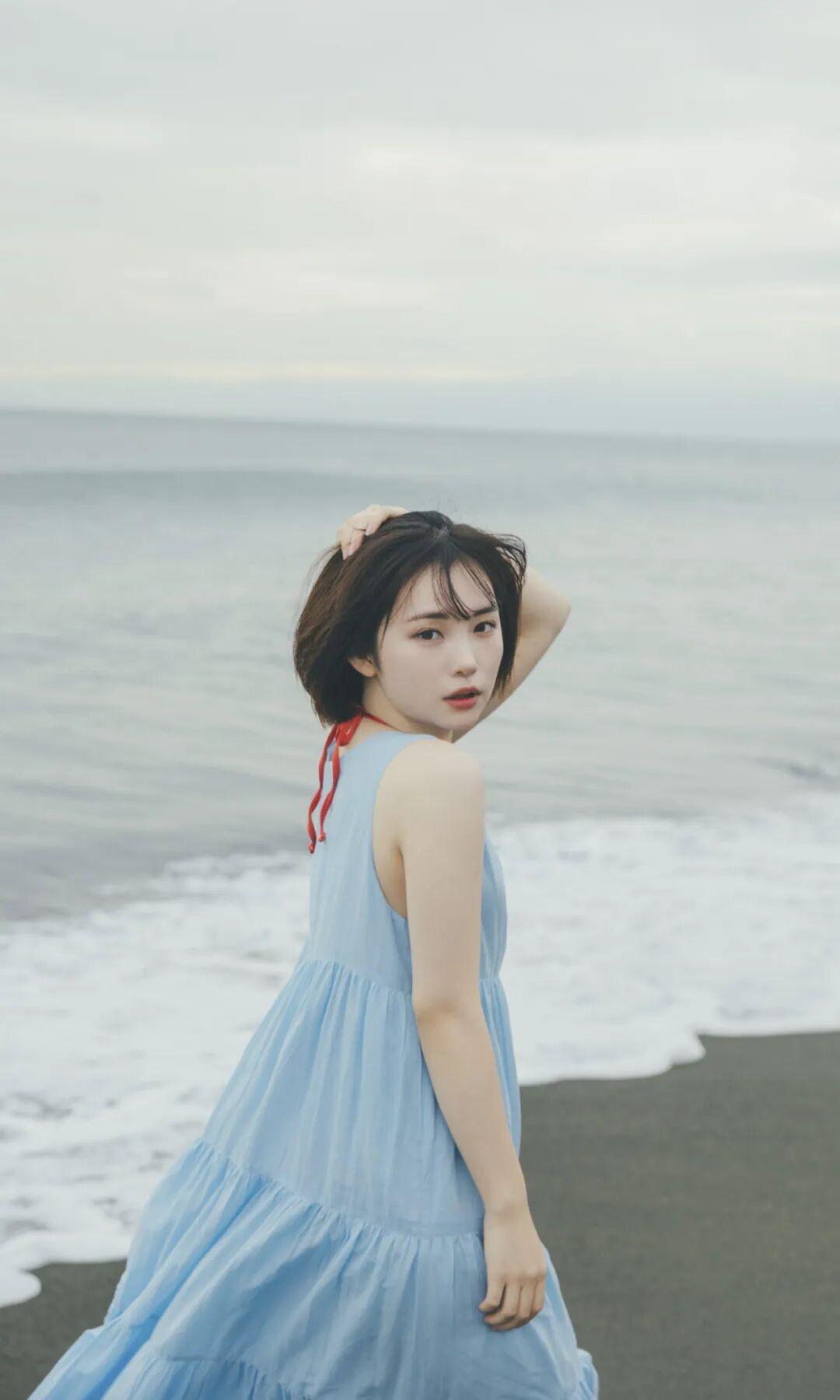心旷神怡。美女海边风景逆光沉思写真海边风景写真