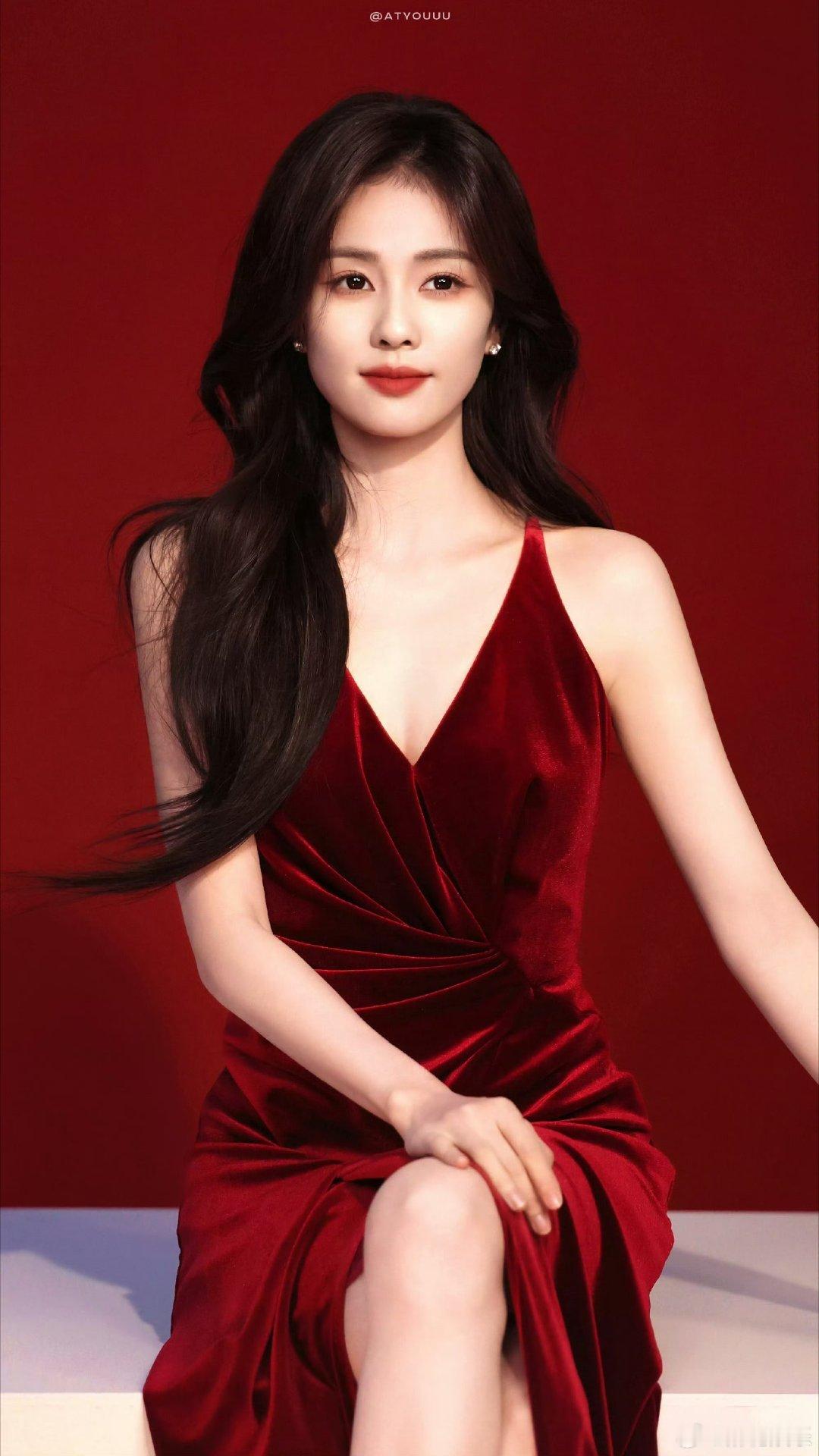 白鹿花朵红裙好适配红色的白鹿啊啊啊