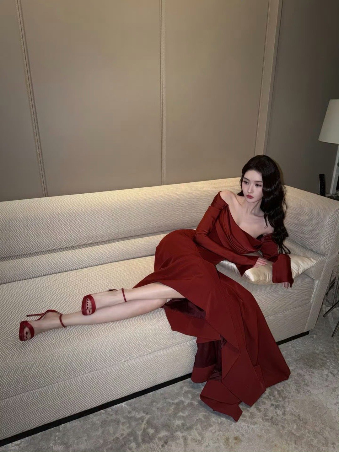谁来懂懂王玉雯呀,黑发红裙的东方美人