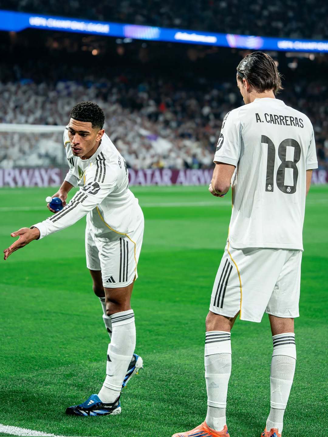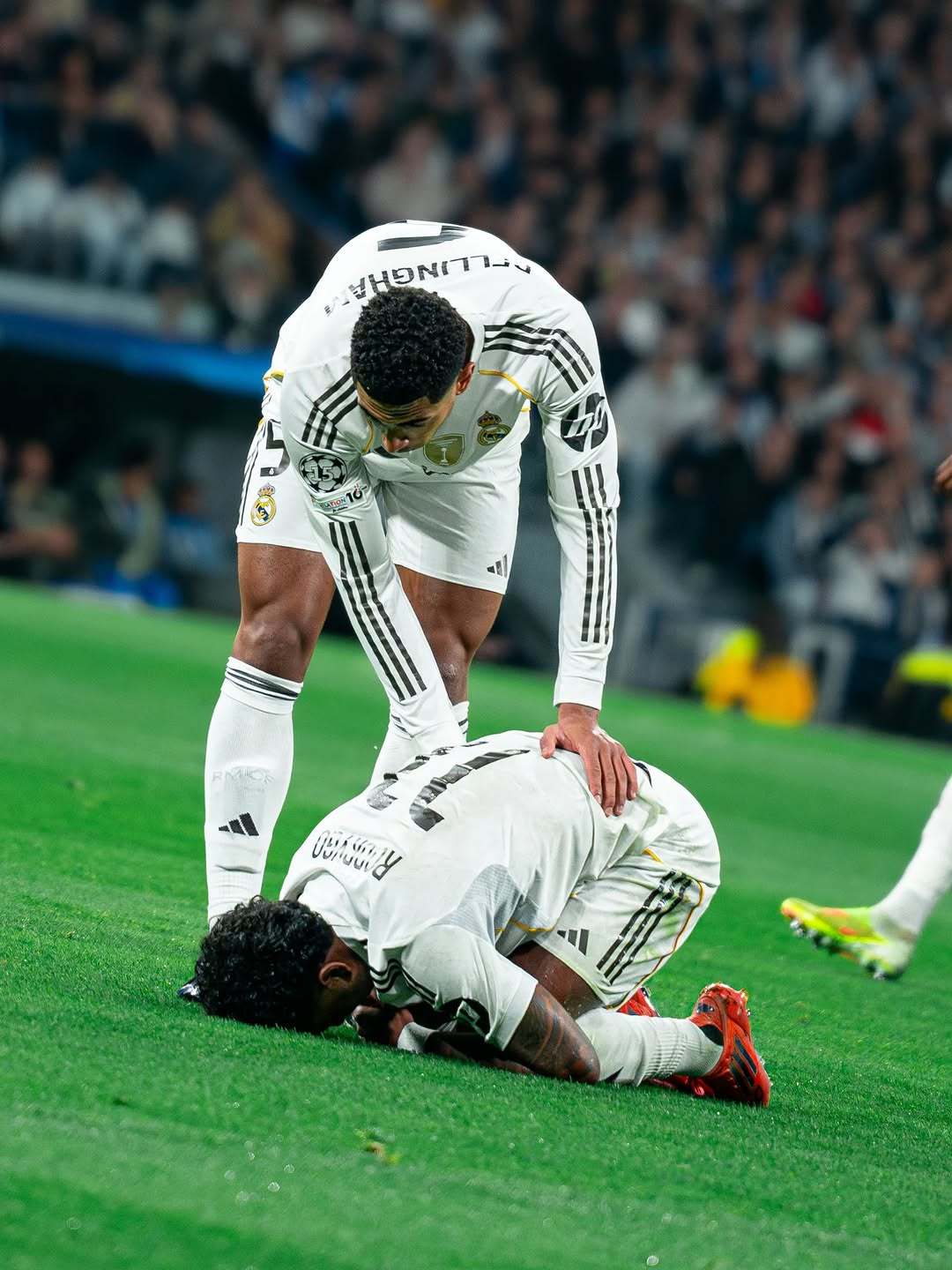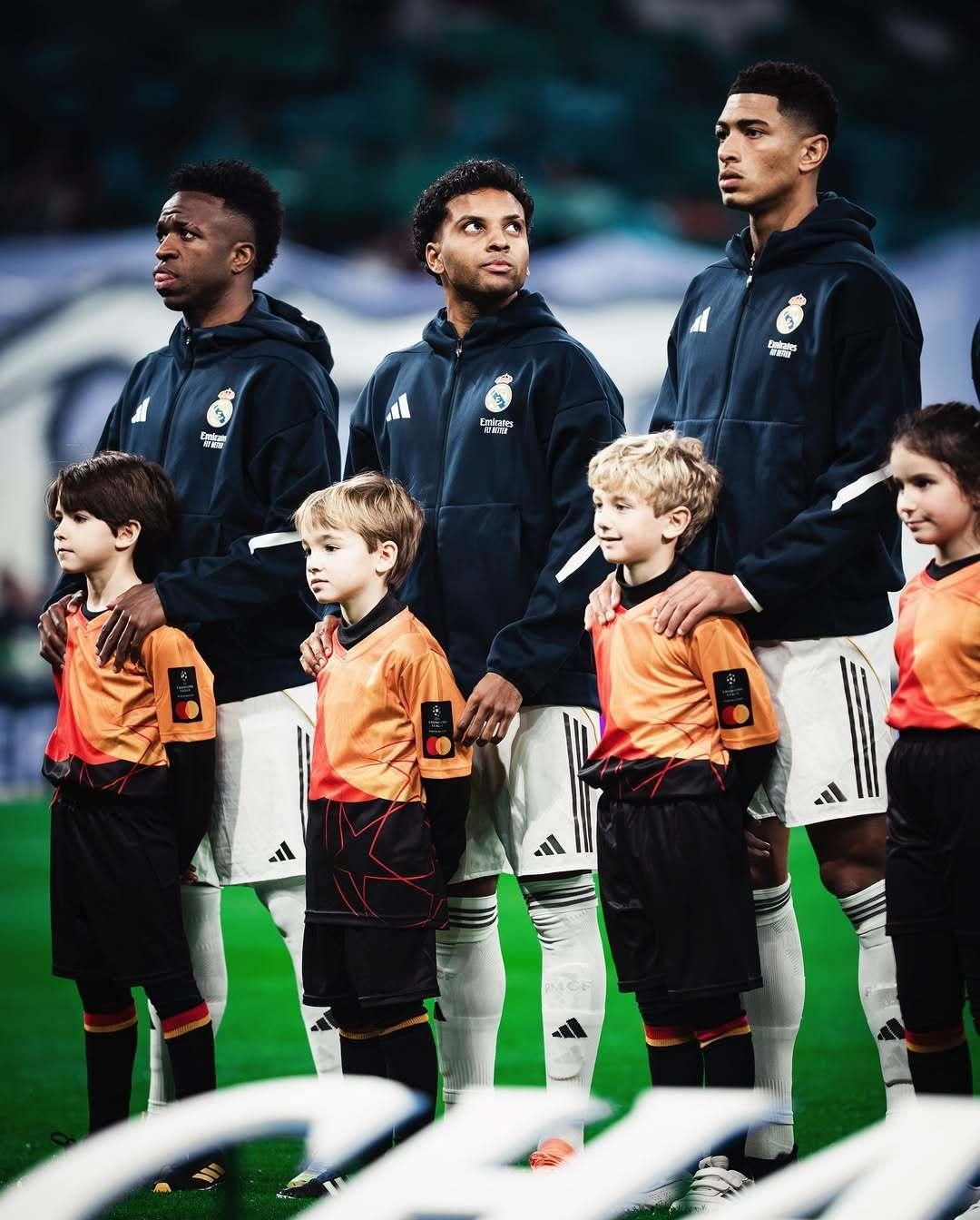 皇马皇马 贝林厄姆·维尼修斯·姆巴佩蹦蹦跳跳一起庆祝阿森西奥这张拍很帅