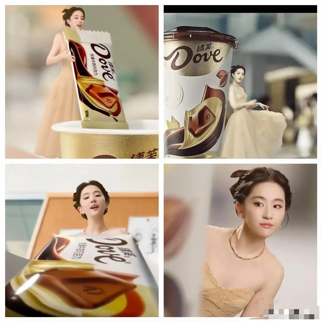 还是德芙聪明啊! 既想用刘亦菲当代言人, 又想被大家看到巧克力,于是德芙想了一个办法,那就是把刘亦菲变小,把德芙巧克力变大! 这次德芙一定要给广告公司加鸡腿!真的是完美解决了宝格丽当初的尴尬。 刘亦菲的美貌,属于一出场就在也看不到任何存在的级别,宝格丽的前车之鉴,无论给刘亦菲戴多大的宝石,大家只能看到刘亦菲的美貌,完全忽略宝石! 这次德芙巧克力广告,巧克力比刘亦菲还大,刘亦菲直接化身为小人国仙女了。 这次刘亦菲出场,我是真的看到巧克力了!