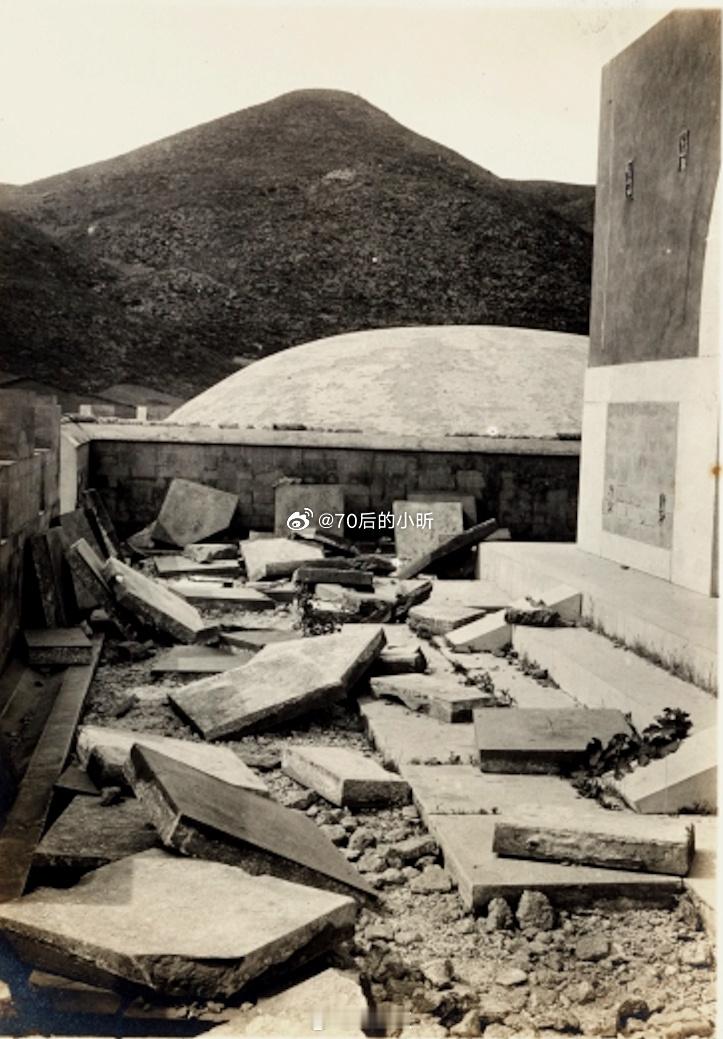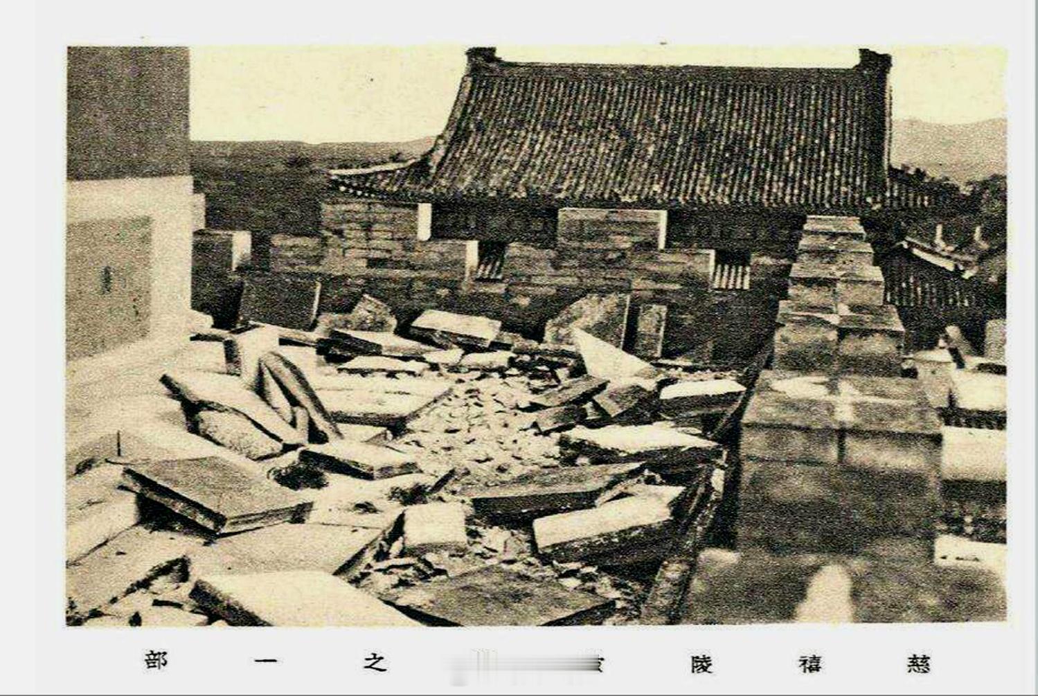 从这两张慈禧陵老照片上看,明楼周围的地面铺墁的金砖都被起翻了,有人解释说是盗陵匪