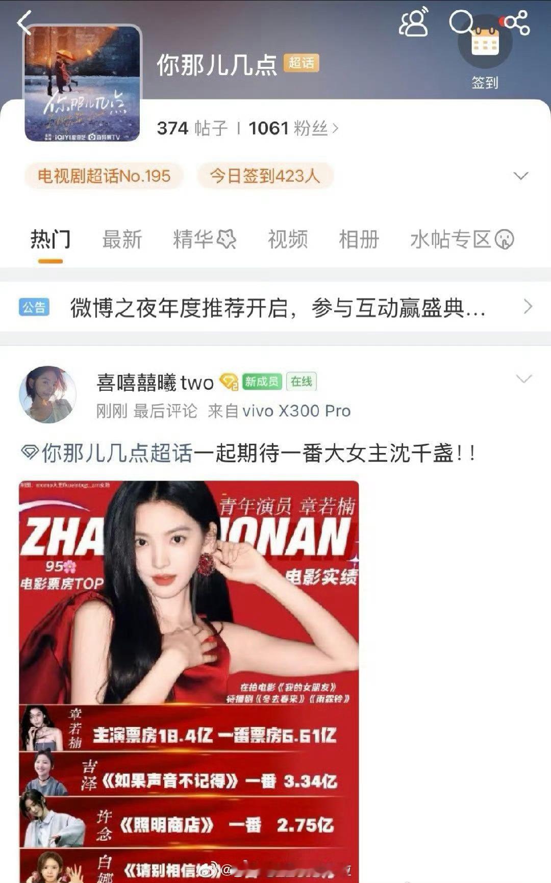 王安宇和章若楠粉丝为《你那儿几点》各做了剧超,剧还没官宣呢
