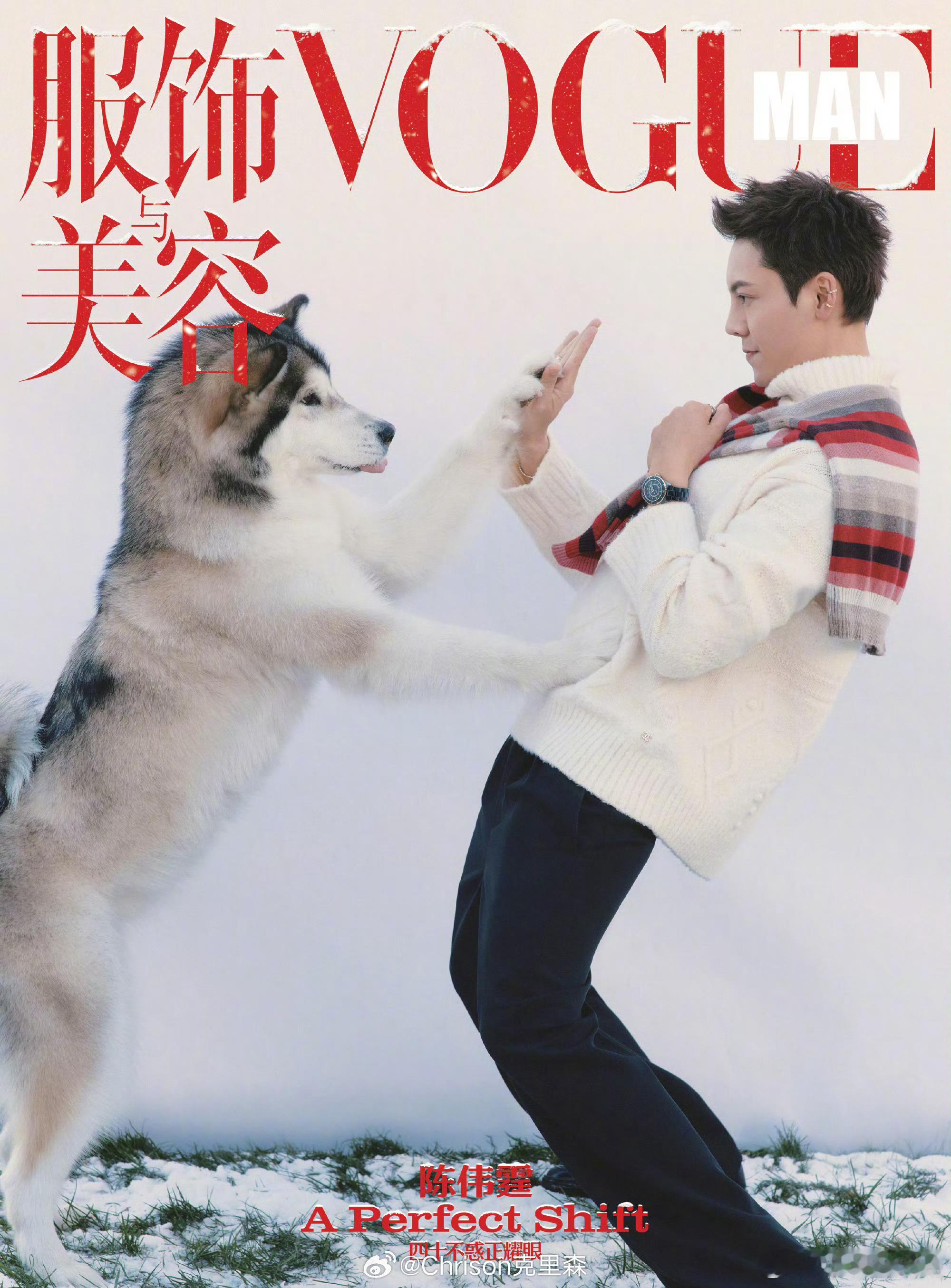 陈伟霆 陈伟霆 x VOGUE MAN┊William在《许我耀眼》出圈后,带上自家的阿拉斯加解锁新封面,佩戴 CHANEL J12 腕表及 Coco Crush 高级珠宝登上十二月刊封面~陈伟霆VOGUEMAN十二月刊封面陈伟霆跟爱宠拍VOGUEMAN封面