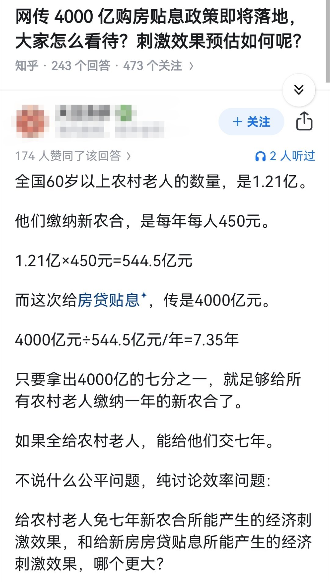 网传 4000 亿购房贴息政策即将落地,大家怎么看待?刺激效果预估如何呢?
