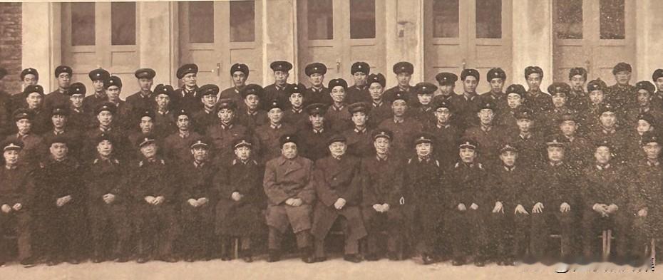 1959年1月12日至28日,全军第一次军事科学研究工作会议召开。会议通过了《中国人民解放军两年(1959-1960)军事科学研究工作纲要》,规划了我军第一代战斗条令和战役学的编写任务。图为彭德怀(左7)、叶剑英(左8)与全军第一次军事科学研究工作会议出席人员合影。