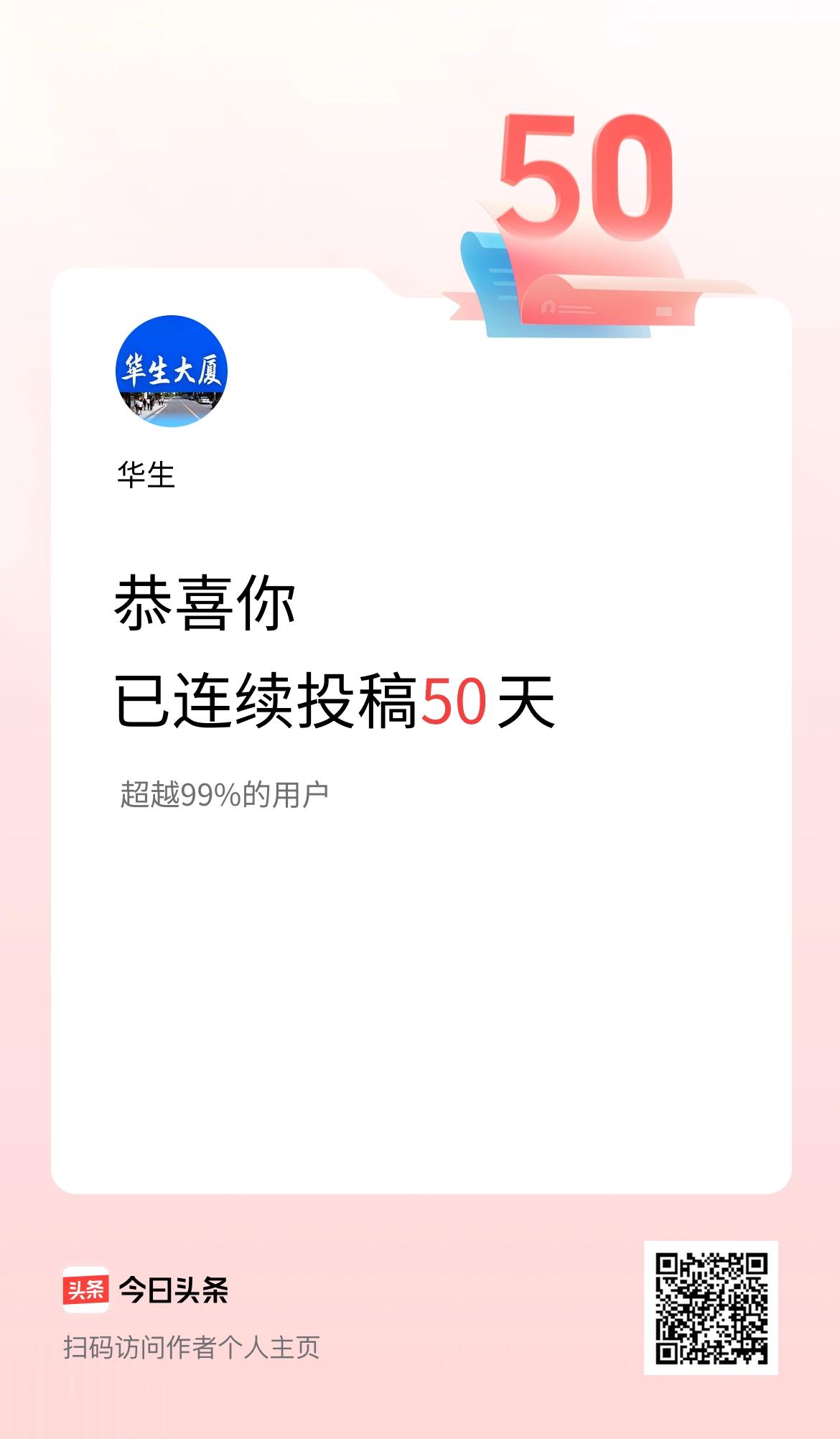 我在头条连续投稿50天 致50天陪伴的每一位 感恩平台给予发声的土壤,让文字有了落地的力量。 更要谢谢读者与天友们——那些深夜留言的思考、真诚点赞的鼓励,甚至尖锐的建议,都化作坚持的底气。 50天只是起点,因你们的互动热忱,我有信心把这件事做更久。未来,继续用内容回应期待!