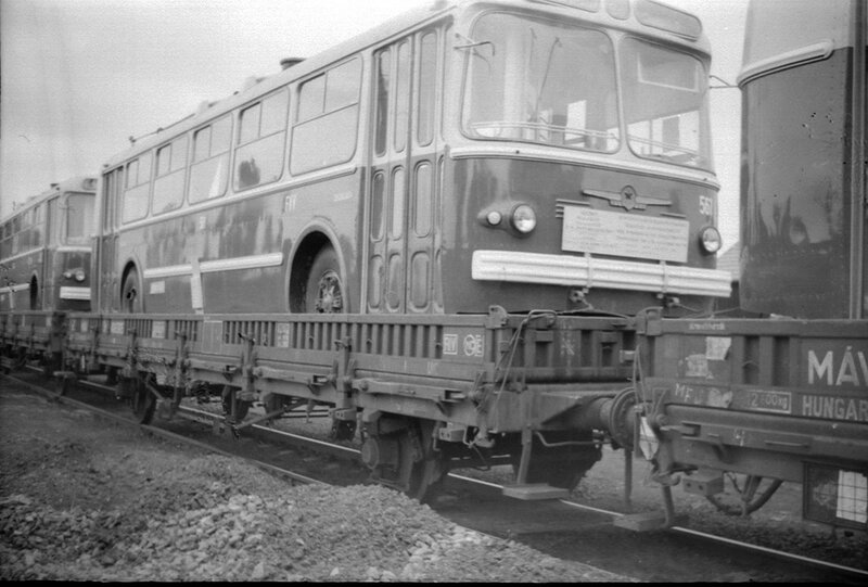 1966 年,保加利亚,铁路上运输的新型苏联无轨电车。