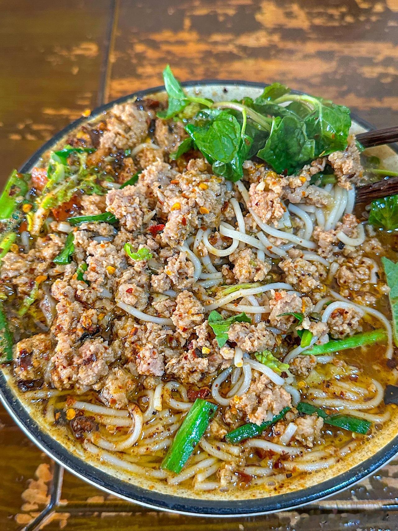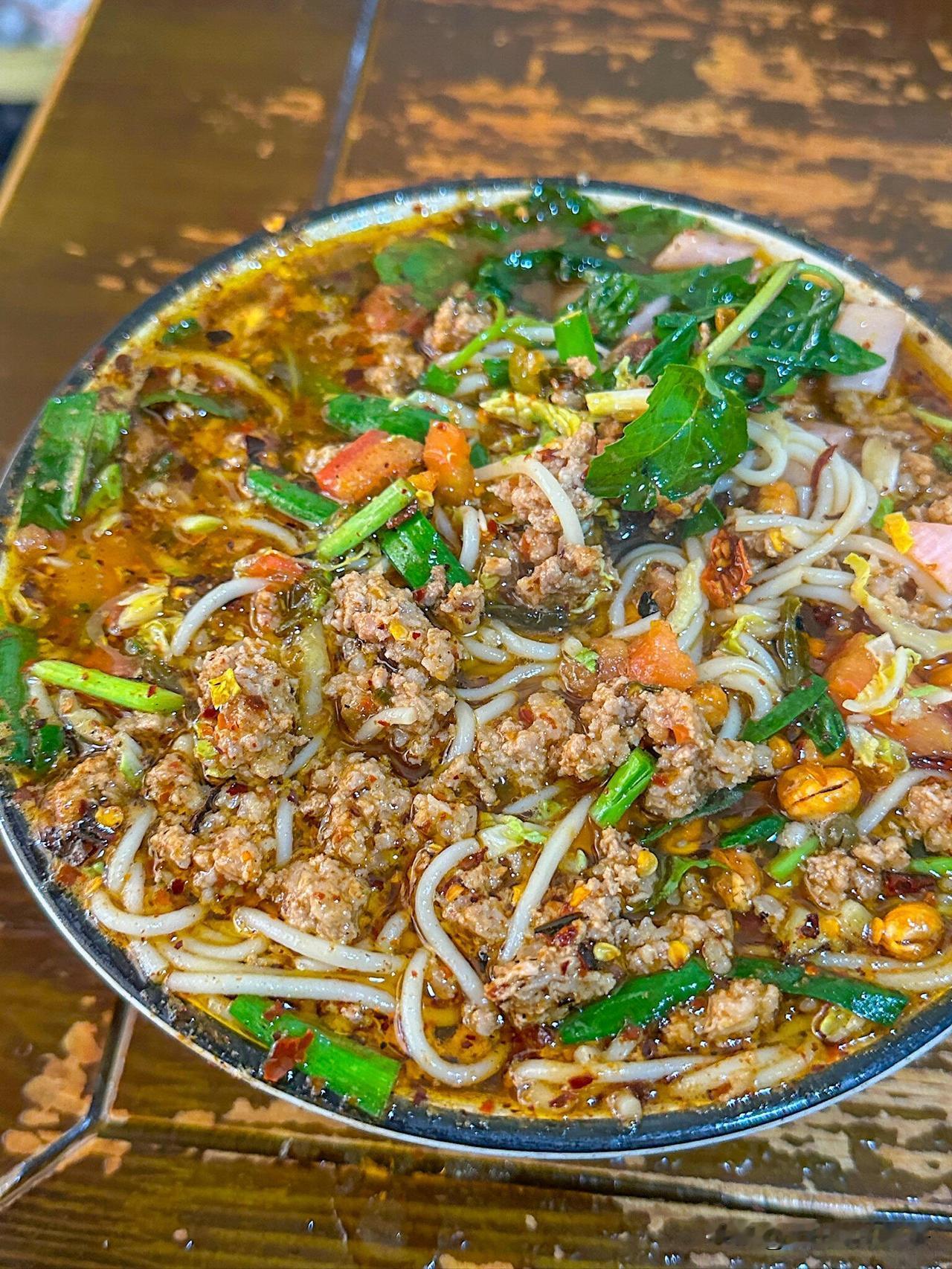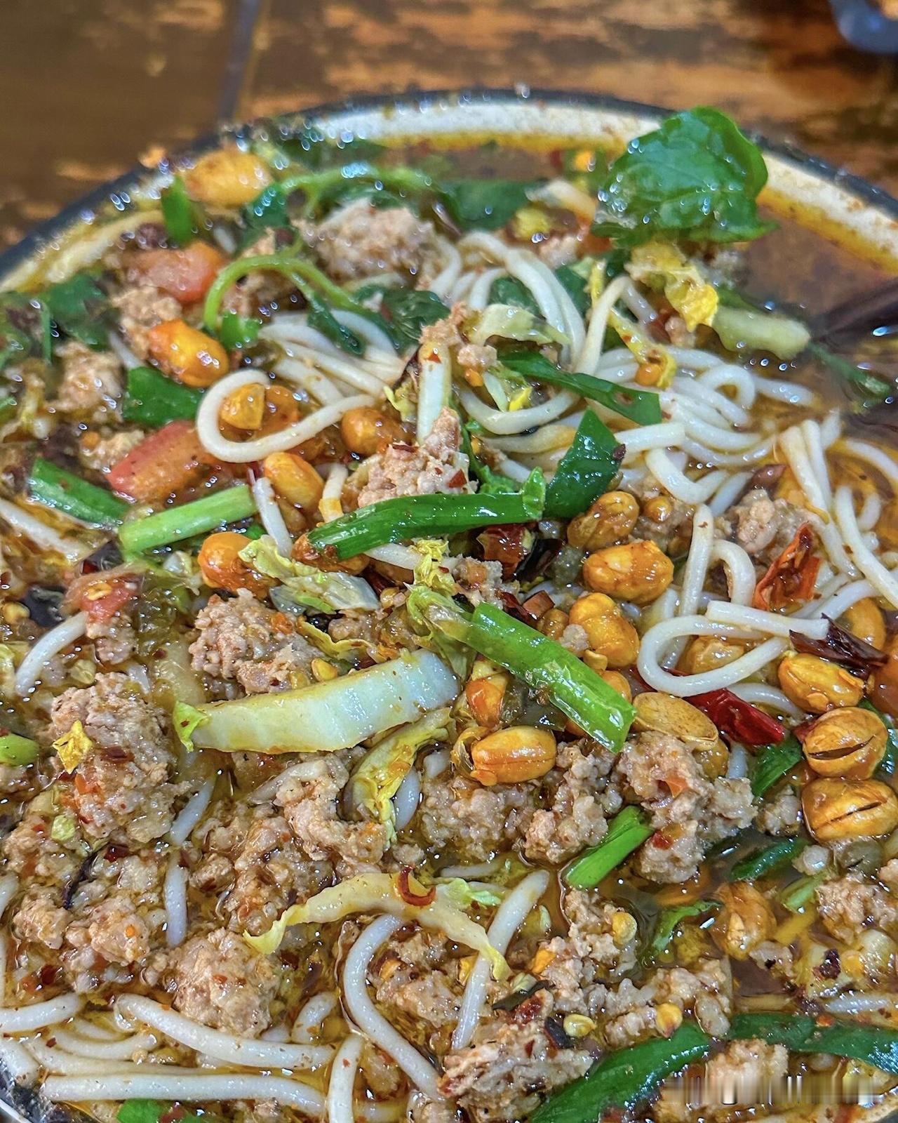 宣威的小锅米线,真是让人吃到吮指的美味!就说可渡部落这家店,试营业不到一个月就被挤爆。 小店在宣威花鸟街旁,黑色门头、木质装饰,简约大气。 他家的糊辣米线是祖传手艺,配方都几十年了,是地道“老宣威”味道。汤汁偏黑,用的是黑色糊辣子,搭配猪肉、香菇酱、包菜、韭菜和骨头汤,暖胃爽口,还送秘制卤蛋。 米线和肉馅都过称,足量足味。除了米线,还有洋芋粑粑、祛湿粥等早点。宣威人是出了名的“馋屁股”,对吃很有讲究,这小锅米线就是宣威美食魅力的代表!