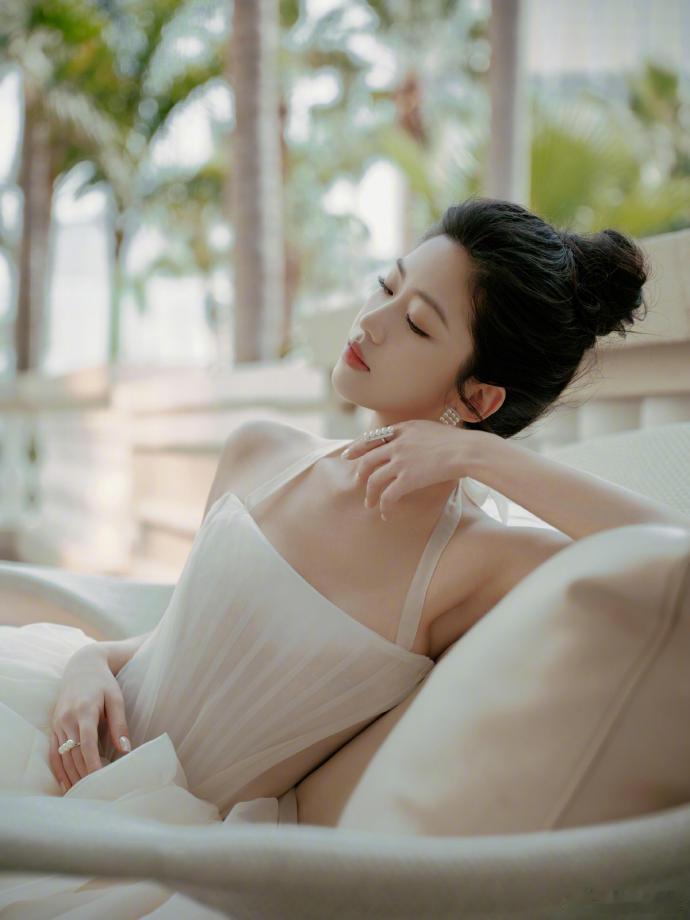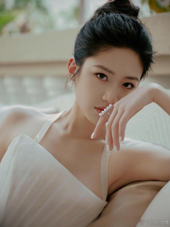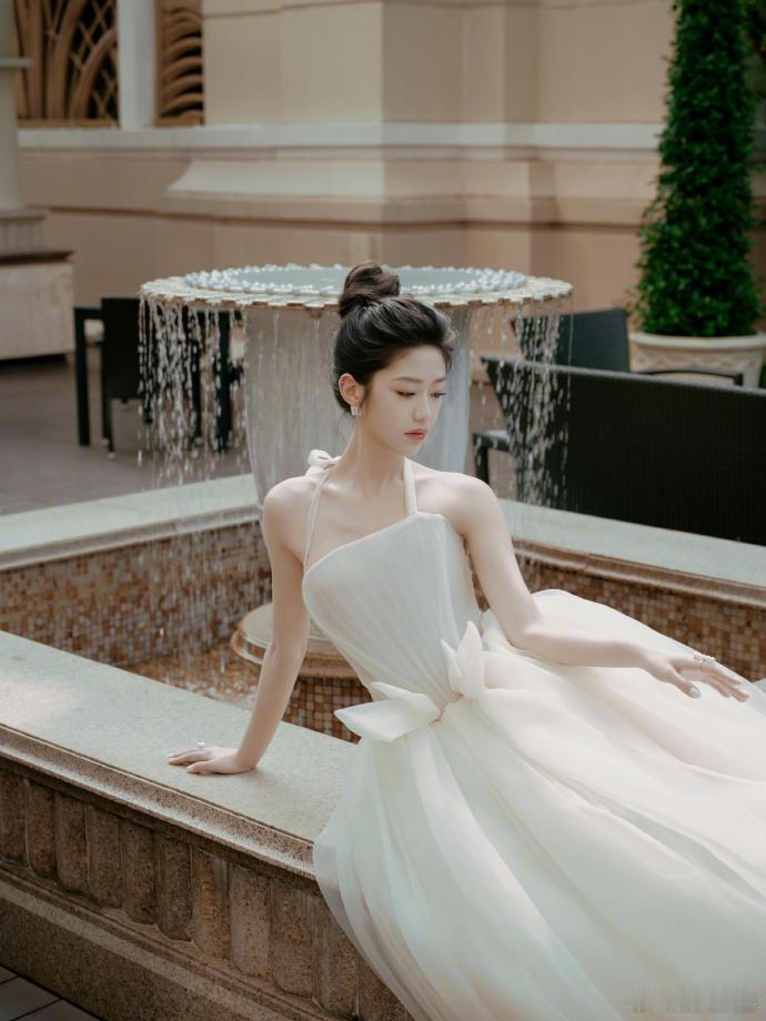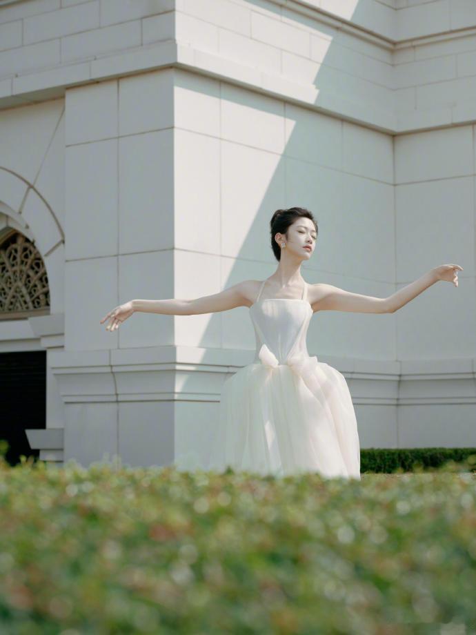 这完全是白天鹅本人吧。优越的肩颈线条搭配LA VIE白色礼服花苞裙,搭配珍珠耳环更突出了优雅气质,美到尖叫 娱乐娱乐