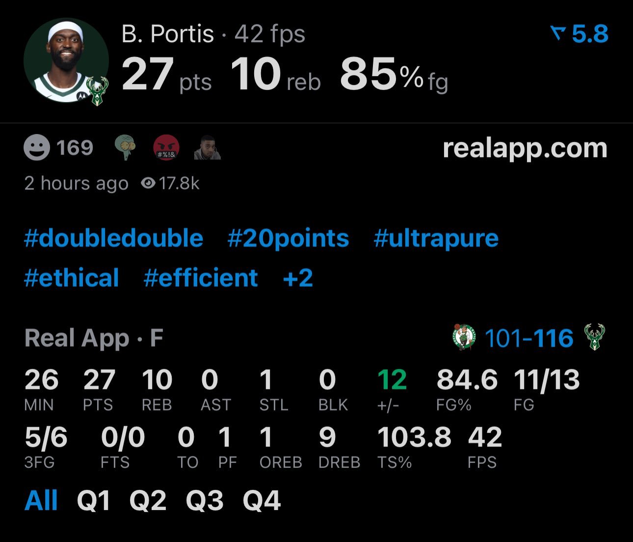 凯尔特人下半场三分26中3,彻底哑火,豪瑟10中0、三分9中0,最终被雄鹿逆转成功。今天雄鹿顺风顺水,库兹马31分赛季新高(17中13),波蒂斯27分赛季新高(13中11),小凯文·波特赛季第一个三双。雄鹿拿下本赛季字母缺阵时的第二场胜利,这是他们近13场赢下的第3场。绿军五连胜终结。凯尔特人vs雄鹿NBA