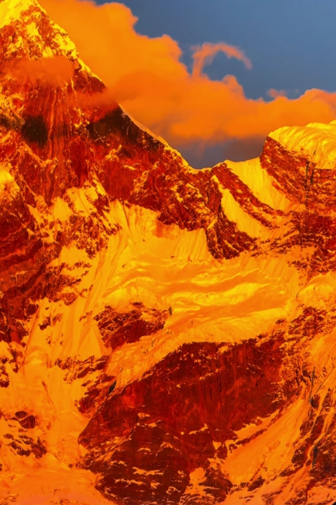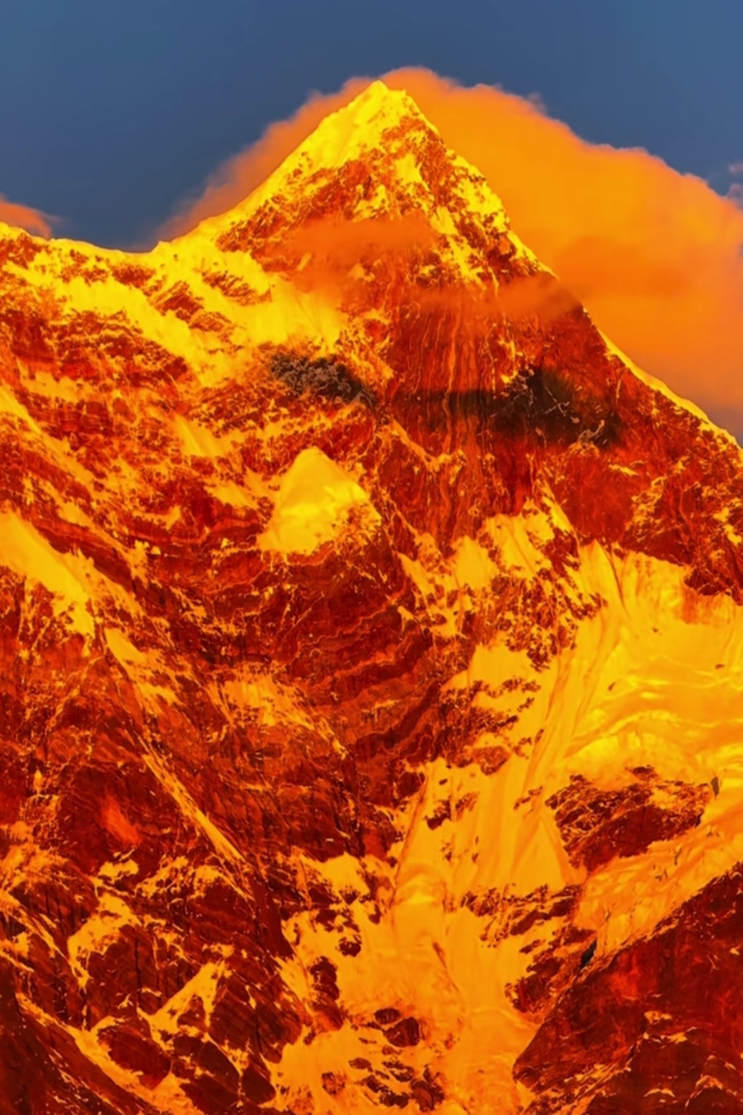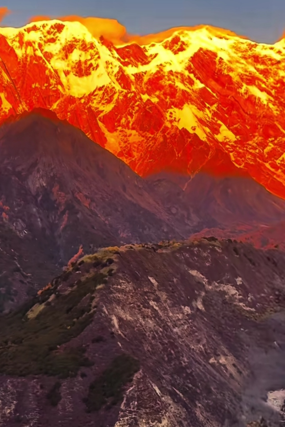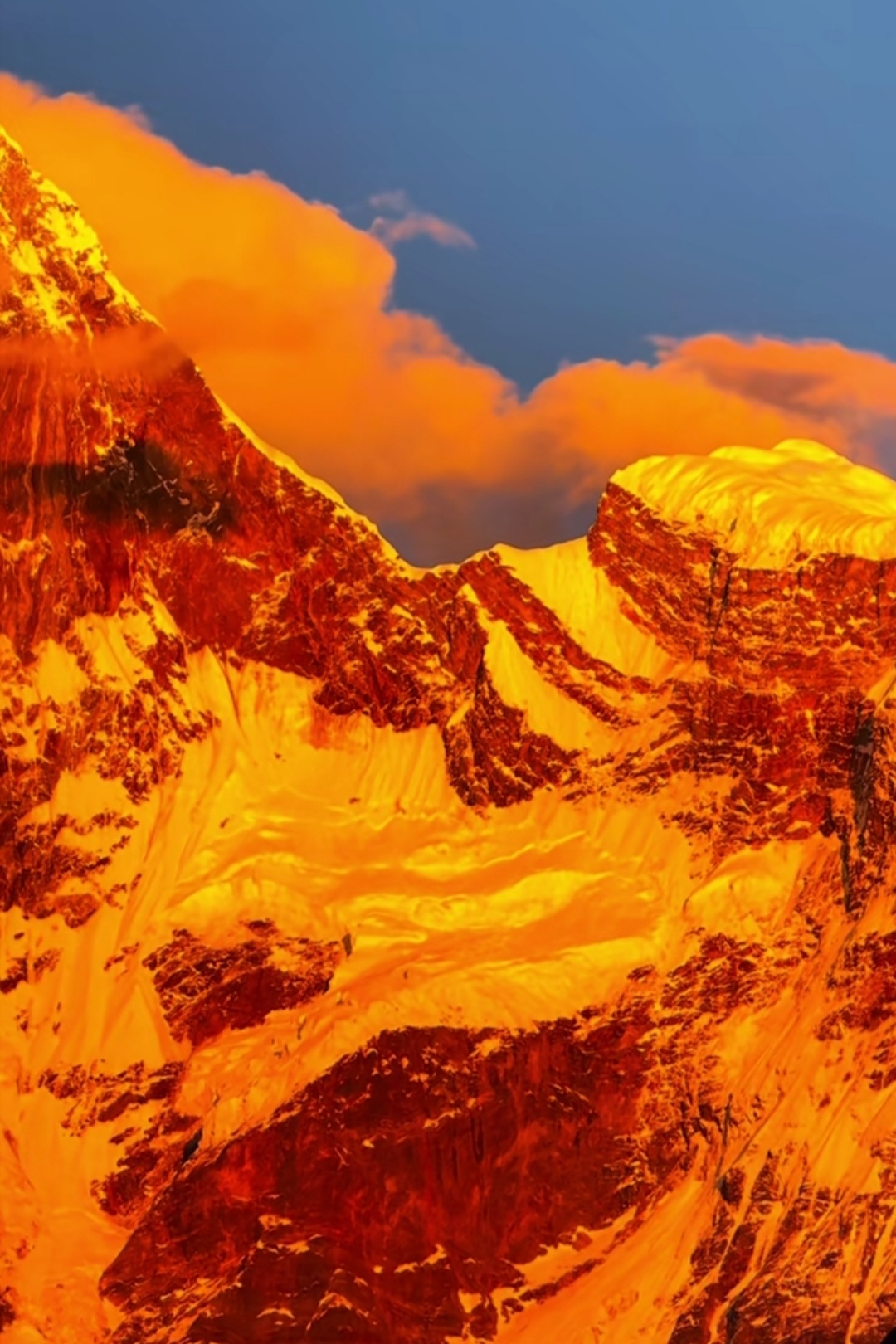 🏔️ 当清晨第一缕光吻上南迦巴瓦,雪山瞬间被点燃成金色。 那是属于神山的加冕时刻,一半热烈,一半沉静。天蓝得如此纯粹,山峦披上金纱,云霞也染上羞赧的橙。有人说,看见日照金山的人会幸运一整年,而这一刻,我只想屏住呼吸,把所有的震撼和感动,都揉进这幅天赐的画面里。南迦巴瓦,十人九不遇的“羞女峰”,谢谢你为我露出真颜。这世界有多少风景值得跋涉?答案,就藏在这片金色的光芒中。