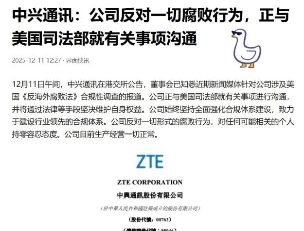 中兴公司到底是美国的还中国的?这简直是人类工业史上的奇观,2018年已经连被美国罚了近20亿美元。现在更是爆出在南美行贿,可能又要罚十几亿。这是故意让美国卡脖子还是怎么的? 中兴公司到底是美国的还是中国的?这问题最近吵得厉害,答案其实很明确,它是根正苗红的中国企业,控股股东是深圳国资背景的中兴新通讯,可这身份没挡住它被美国反复罚款,简直是人类工业史上的奇景。 2018 年那次罚款至今让人印象深刻,不是近 20 亿,实际算下来得有 22.9 亿美元,原因是它偷偷给伊朗卖通讯设备,违反了美国的出口管制规定,被抓住后不光交钱,还得让美方派人进驻当 “监督员”,那 没想到刚喘口气,2025 年 12 月又炸出大新闻,路透社说它可能再挨 10 到 20 亿美元罚款,这次不是出口问题,是涉嫌在南美行贿,委内瑞拉、阿尔及利亚这些国家都有牵扯,最早能追到 1998 年的旧账。 这消息刚传出来,中兴 12 月 11 号就发了公告,说正跟美国司法部沟通,会用法律维权,生产经营没受影响,可网友不买账,纷纷吐槽 “怎么又是你”,这疑问戳中了大家的痛点。 美国的《反海外腐败法》确实管得宽,连外国企业在海外的行为都要管,中企里不少吃过这亏,但中兴的问题早有苗头。 2015 年挪威主权财富基金就因为腐败嫌疑,建议投资者别碰中兴股票。2020 年美国司法部就开始调查它的行贿问题,只是直到最近才爆出可能的罚款金额,这可不是突然找茬。 更让人费解的是,中兴 2024 年 8 月还发过内部备忘录,喊着 “对贿赂零容忍”,建了专门的反贿赂合规体系,转头就被爆出新问题,这体系到底是摆设还是没落到实处? 大家心里都清楚,国际生意不好做,可合规是底线。华为也被美国针对,但人家从没在这类问题上栽跟头,对比之下,中兴的合规意识确实差了不止一点,这真怨不得别人。 有人替中兴叫屈,说美国法律管太宽。可做生意就得守当地规矩,就像咱们去国外旅游要遵守当地习俗,企业出海更得懂游戏规则,总踩着红线走,不被罚才怪。 2018 年被罚后,中兴说要彻底整改,结果没过几年又出这档子事。这就像孩子犯了错写保证书,转头又犯,难免让人怀疑是不是没长记性,或者根本没把合规当回事。 其实不止中兴,不少中企早期出海都有 “野蛮生长” 的阶段,想靠旁门左道抢生意。可现在不一样了,全球对腐败零容忍,再用老办法只会栽大跟头,这点必须清醒。 中兴的市值也就一千多亿人民币,两次罚款加起来快 40 亿美元,差不多是四分之一市值,这么折腾下来,不管是对公司还是对股东,都是巨大的损失,合规这堂课真得好好补。 换作是你,要是开公司总因为违规被罚款,肯定得好好查内部问题,而不是怨别人太严,中兴现在最该做的不是喊冤,是把行贿传闻查清楚,给市场一个透明的交代。 所谓的 “美国卡脖子” 只是表象,自身的合规漏洞才是真病根,中国企业要走出去,靠的是技术和信誉,不是行贿和侥幸,这点中兴用几十亿罚款换来了教训,其他企业得引以为戒。 企业的底色从来不是靠罚款定义的,中兴的中国身份没变,但国际口碑得靠自己挣。这次要是能彻底查清问题、补上漏洞,未必不是重生的机会,怕就怕在好了伤疤忘了疼。 国家强大了,企业出海腰杆才硬,但腰杆硬不代表可以胡来,合规是走得远的前提,不然就算躲过一次罚款,也躲不过下次,这道理对任何企业都适用,中兴的经历就是最鲜活的教材。 信息来源: 上海证券报——2025-12-11中兴通讯:正与美国司法部就有关事项进行沟通 目前生产经营一切正常