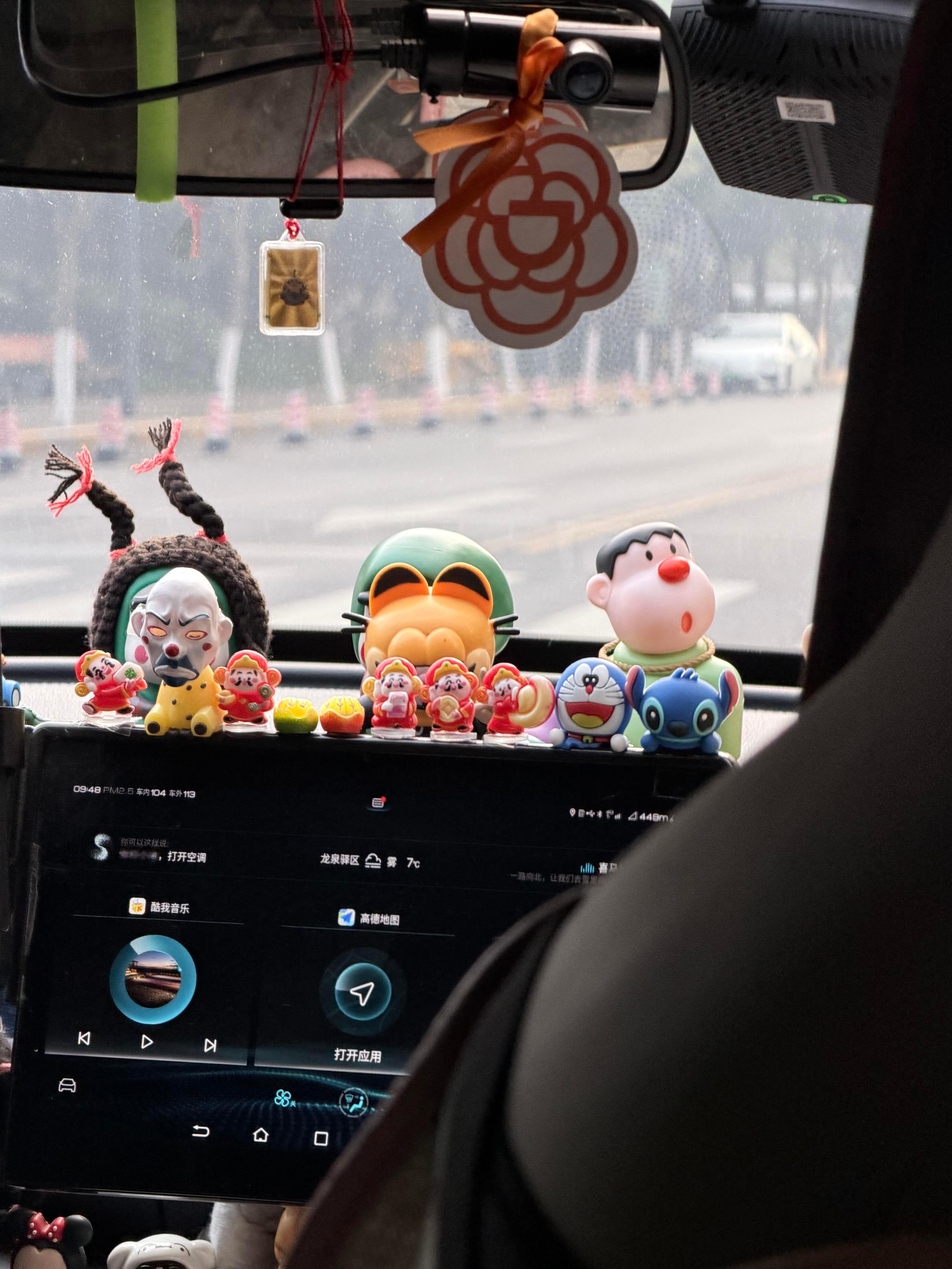 打到了一辆布满小玩具的车!司机说都是他小孩喜欢的,上班路上都变得幸福许多