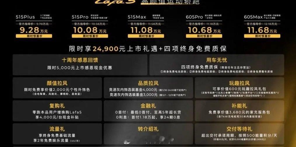 零跑lafa5比预售价低1.3万开卖,9.28万起,半小时大定3000台