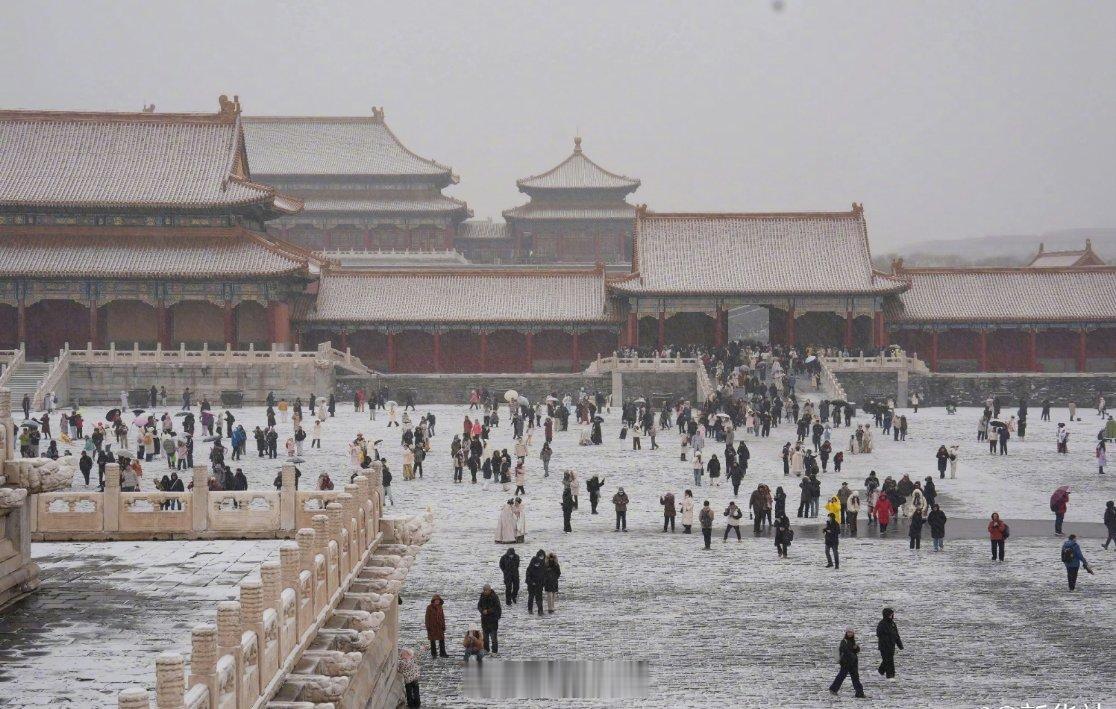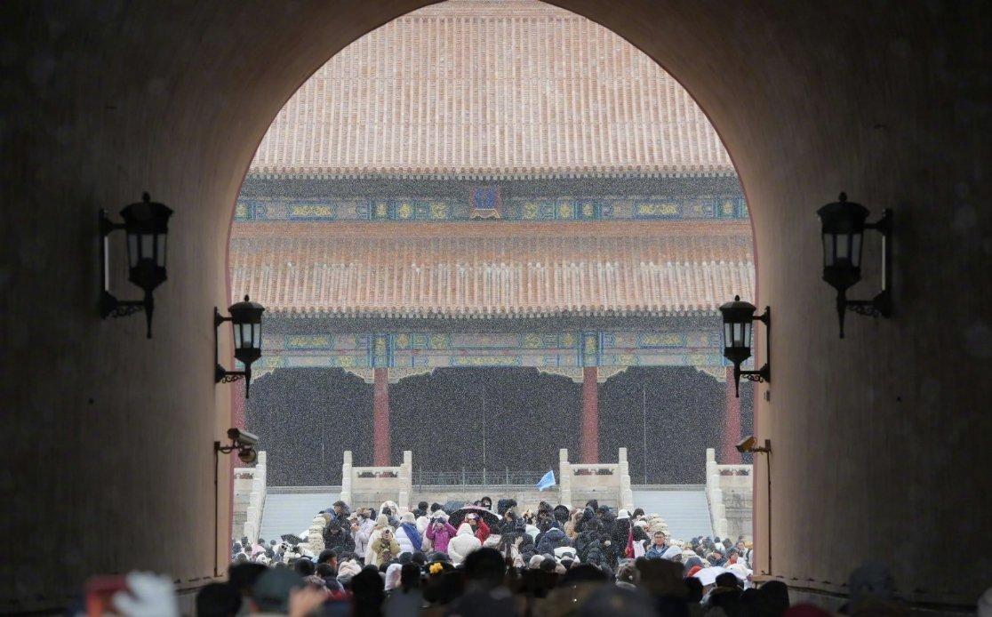 故宫这才符合印象中的故宫,红墙被白雪盖了层边,琉璃瓦上积着薄薄的雪,看着就干净又庄重,一下子对味了,瞬间魂穿宫女身上,太有历史感了