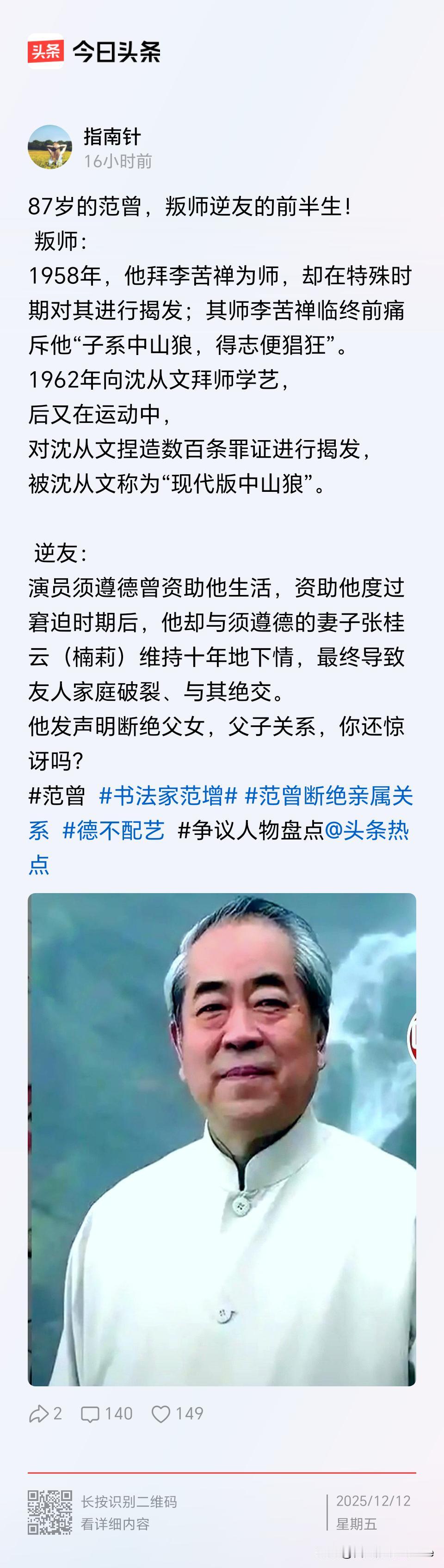 我发现有时候人品跟成功没有什么关系,甚至有时候还是反的。 你看范曾品德方面劣迹