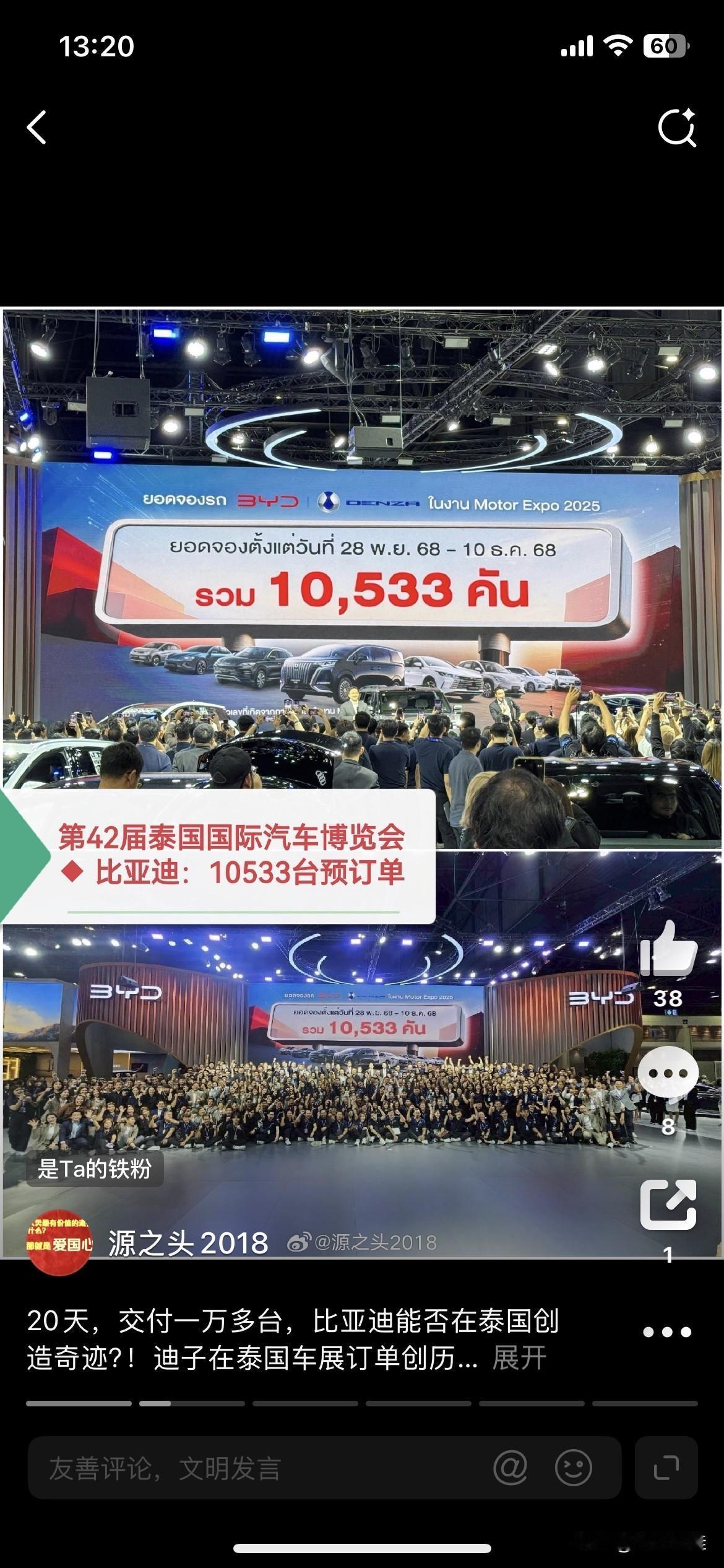这怎么得了? 比亚迪在泰国车展又又又爆订单了! 2025泰国第42届车展上,比亚迪获得10533台预订单,仅次于丰田10872辆,夺得本届泰国车展订单亚军! 兄弟们,小编有种不祥的预感,比亚迪在泰国的销量怕是也要突破万辆了!