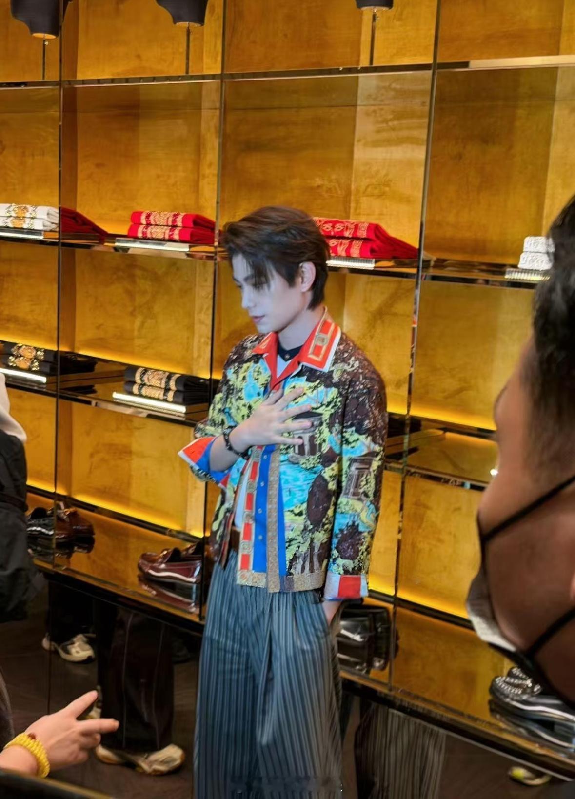 丁禹兮花衬衫条纹长裤造型丁禹兮成都范思哲活动生图脸在江山在