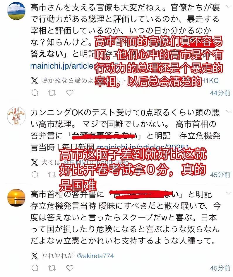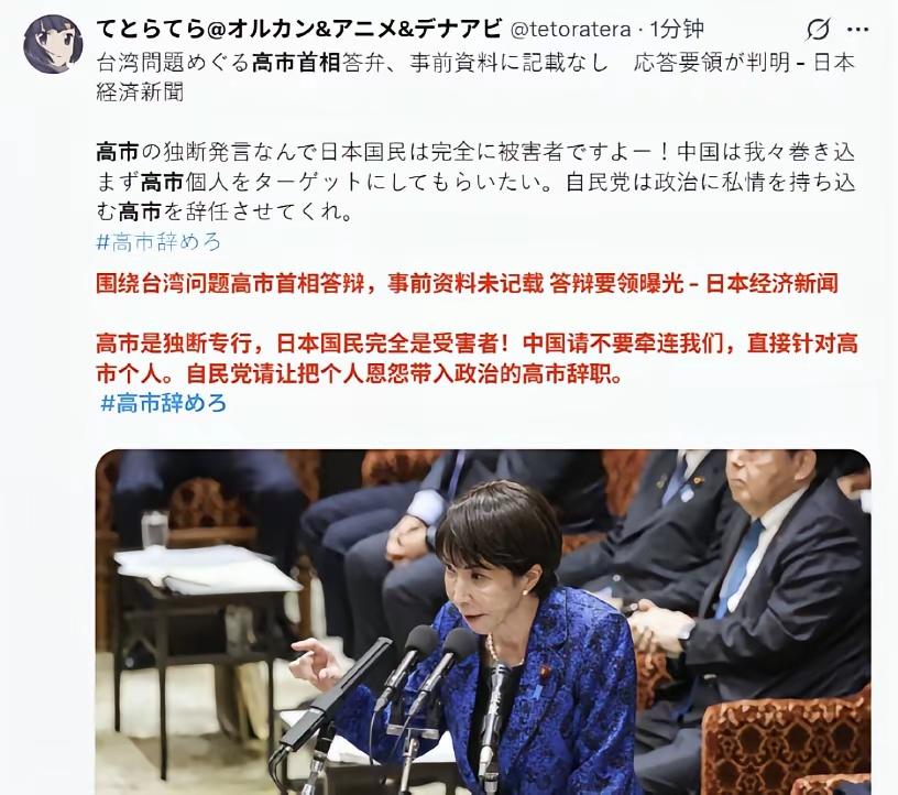 高市答辩原稿曝光,涉台言论是她自由发挥,日本人破大防了:国难! 昨晚(11日),日媒曝光了高市早苗发表涉台言论时那场答辩会的发言原稿,一看才知道:挑衅言论居然完全是高市个人在自由发挥。 按照日本国会的答辩流程,高市会提前拿到在野党的提问内容,答辩时只需要照着事先准备好的稿子念就行,而应对涉台问题,原稿上写得清清楚楚:针对假设性问题不予作答(图1)。 这下日本人真是破大防了,尤其是之前那些替高市早苗开脱的人,说什么“首相说出涉台言论是被诱导的”、“首相说的危急存亡事态是有假设条件的”,这下原稿一出,直接辩无可辩。 网友:这事儿远未结束,天时地利人和,外加对手送大礼,把握机会达成战略目的才是正解。 高市之前有百分之七十的支持率,现在下滑了,也有接近百分之六十的支持率!日本大部分民众是作出了选择!这可不是什么误解! 日本人搞政治就跟小孩一样,在做之前就已经想好了借口,不懂得真正的政治是基于唯物辩证法和逻辑链的。