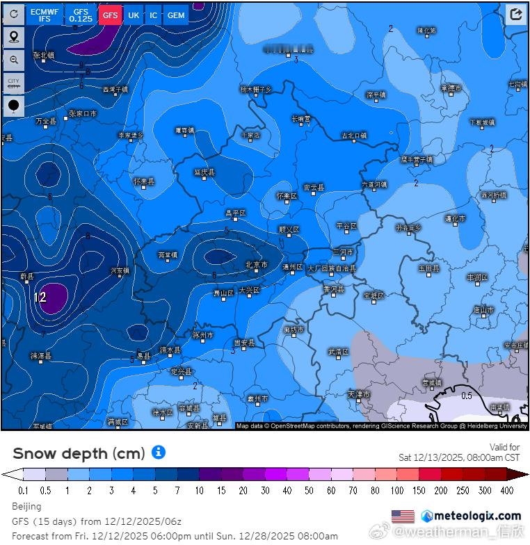 北京初雪 截至今天17时降雪量(雪化为水),北京佛爷顶3.7毫米、海淀3.2毫米、门头沟2.8毫米、石景山2.5毫米,达到了中雪级别。17时积雪深度:石景山、海淀、门头沟、佛爷顶均为3厘米。今晚降雪持续,13日早晨5时前后结束。数值预报给出13日晨,北京门头沟石景山海淀一带,积雪有可能达到5厘米左右。