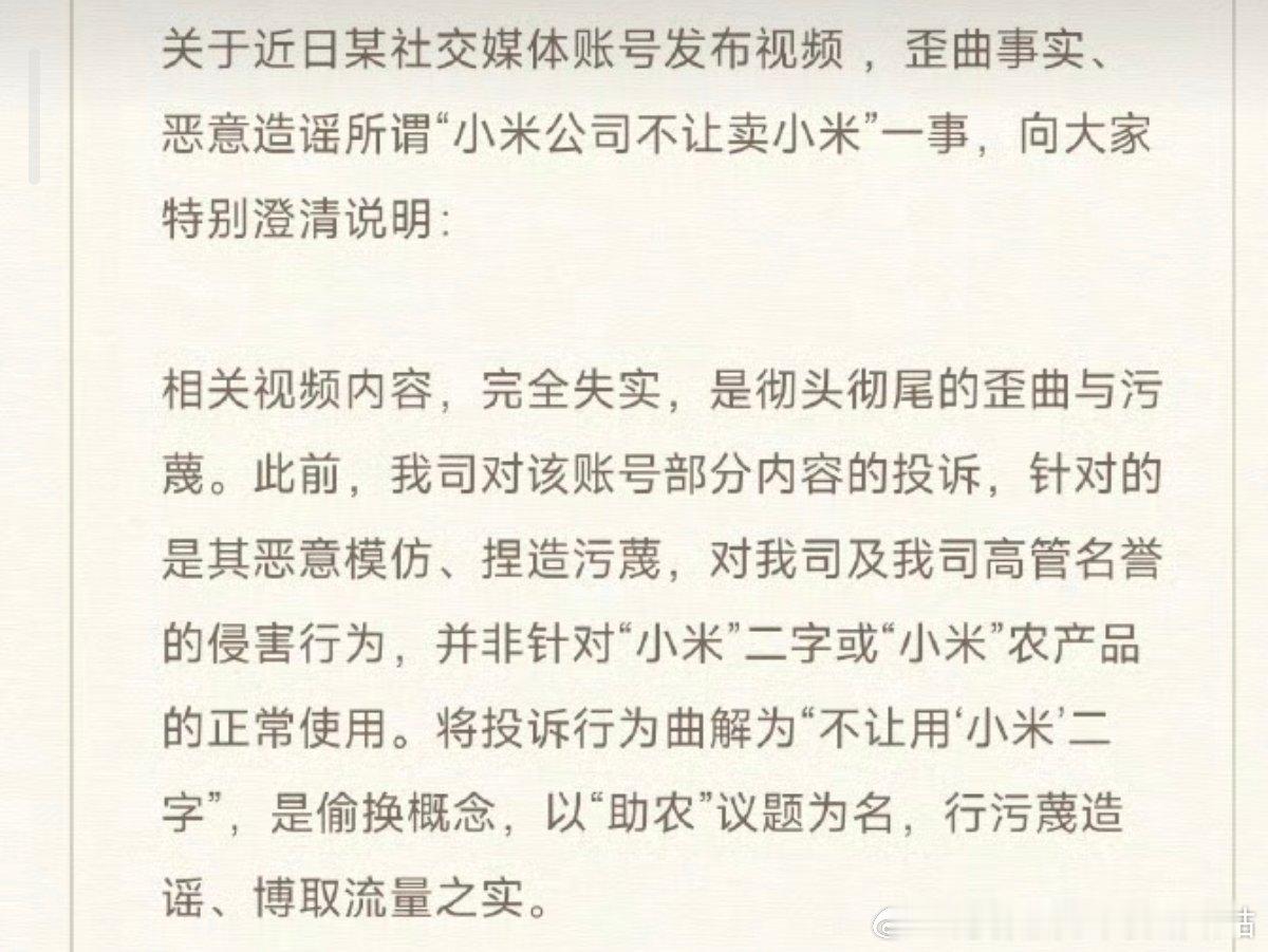写这个稿子的人知道自己大脑混乱吗?小米什么时候提到过任何一嘴“商标”?因为名誉权侵权和人格权侵权被下架,等于不让卖小米?你因为说脏活被禁言,等于不让你说话?虚空造牌,虚空打牌,现在的媒体行业都怎么回事?认同张雪峰,成为张献忠。