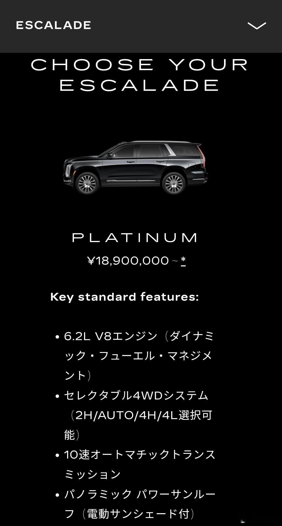 型车街拍凯雷德在大阪也算常见的全尺寸豪华SUV了。车长 5.4 米、6.2L V8,看起来完全不像是为日本路况准备的车,但偏偏有人买单。价格倒是不贵,1890 万日元起,折合人民币 80 多万。那种美式豪华的体量感、路面支配感和 V8 的满足感,是日系和德系都给不了的情绪价值的味道。在寸土寸金的东京、大阪,能开着这么大一台车出门,本身就是身价证明。