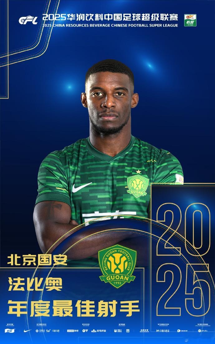 刘殿座当选2025中超最佳守门员法比奥当选2025中超最佳射手 2025赛季中国足球职业联赛颁奖仪式,成都蓉城门将刘殿座当选中超最佳守门员,国安外援法比奥当选中超年度最佳射手。