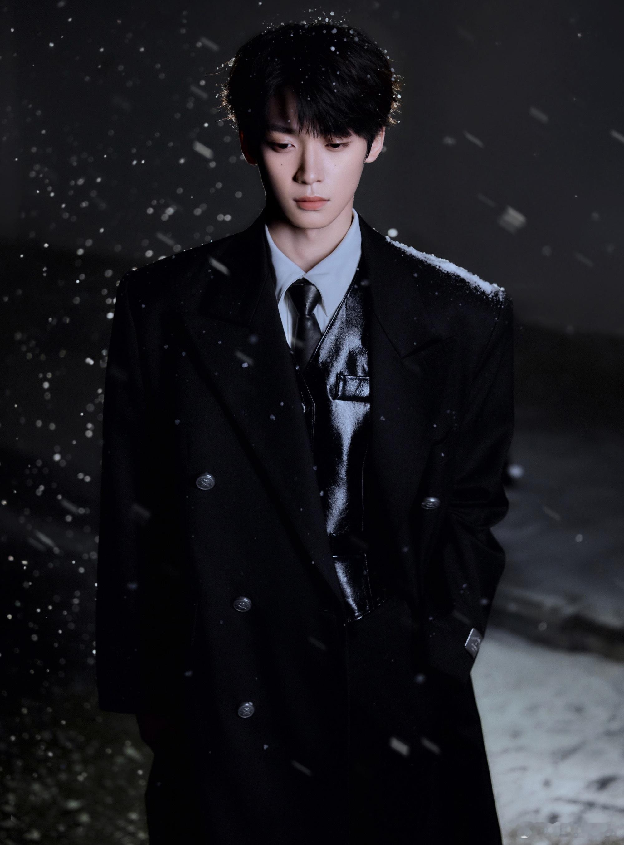 梓渝晒十一宫格初雪营业照,好权威的一张脸,黑色大衣好有韩剧男主氛围感啊,初雪快乐!