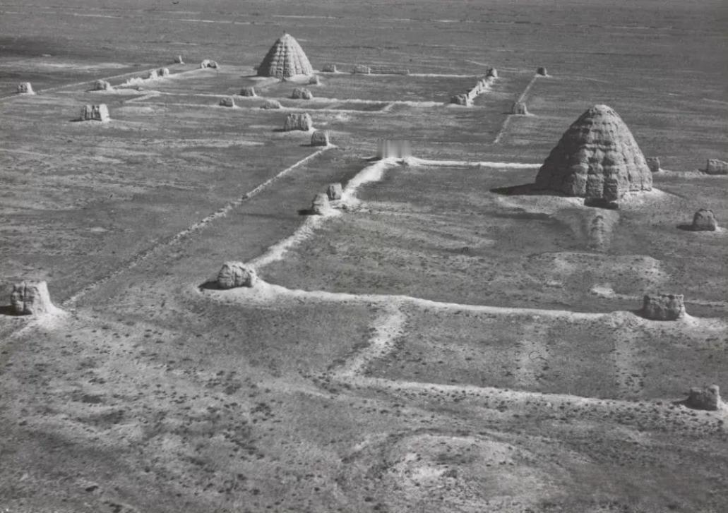 这是20世纪30年代德国飞行员卡斯特低空飞越贺兰山时,用镜头定格的西夏陵1号、2号陵——彼时它们还只是贺兰山东麓戈壁上“神秘的土堆”。 画面里,两座圆锥形陵台如沉默的巨冢,突兀地立在空旷的荒原上,整个场景被戈壁的荒寂包裹,没有草木点缀,衬得陵台像被遗忘的“东方金字塔”。卡斯特的镜头从50米高空俯拍,让这些千年前的帝陵显出一种孤立又肃穆的沧桑——那时没人能说清它们的来历,只知道是贺兰山脚下沉默了近八百年的秘密。