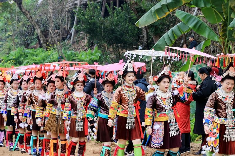集头条勋章,记创作时光 两广通婚早已不算什么新鲜大事了。 我留意到,嫁入方圆五六条村庄的姑娘中,广西和贵州的居多。 而且,嫁过来的这些姑娘基本都沾亲带故,有的是表姐妹,有的是小姑介绍侄女,还有亲姐妹呢。 所以,这些嫁过来的姑娘根本不愁没熟人。 一旦哪家外来媳妇家里办喜事,足足能摆5桌,满满50人有多。 特别是如今网络发达,嫁去附近镇的外来媳妇们还建了老乡群。 她们哪家有喜事,她们便会齐聚一堂,互相帮忙,场面相当的热闹。 大家都疑问,我为何对这些事如此了解? 其实,是因为我老婆的叔叔我叫外叔的,他是娶了贵州毕节姑娘为妻的。 每逢外叔家做年例,我老婆的婶婶在微信群提前一天打招呼,附近镇上的贵州妹子都会赶过来,她们大家欢聚一堂的。