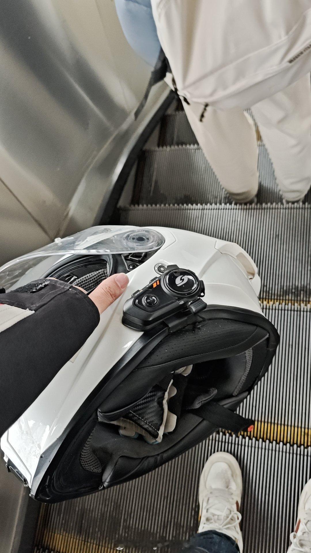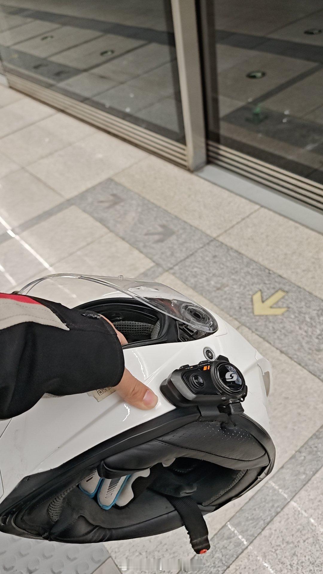 下雪了下雪了只好骑车到地铁站,然后坐地铁去上班。还得拎个大头盔。