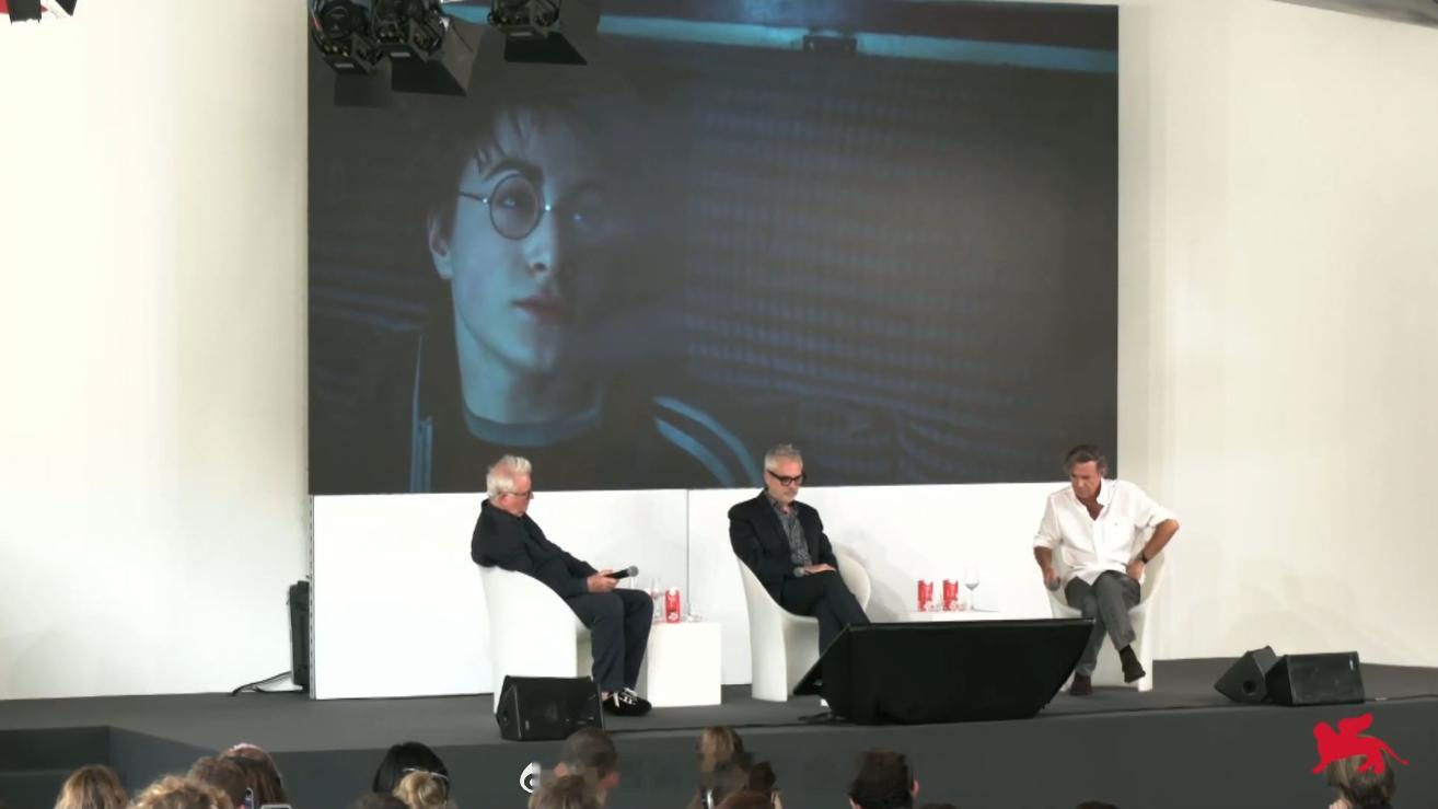 今年威尼斯电影节大师班邀请了阿方索·卡隆,他谈到了2004年拍《哈利波特》的创作理念。主持人: 与前两部相比,《哈利·波特与阿兹卡班的囚徒》有一种偏暗甚至极暗的打光倾向。阿方索: 这也是从一开始就讨论的事情,因为前两部完全是高调布光。高调意味着一切都很明亮,你可以看到一切,阴影很少或者非常柔和。但这也是我进入这部电影的一个切入点,前两部是关于这些角色作为孩子在一个纯真世界里的故事,但这部是向青春期的过渡,他长大了,他们突然意识到潜伏在阴影中的东西。阿方索: 另一件事是,我们决定整部电影里只用少数几个特写镜头。如果你看这部电影,会发现几乎没有特写。某个地方有特写是因为摄影机会从远处一直推到脸部。我们的原则有点像约翰·福特在西部片中的原则,中景就是特写。如果中近景是特写,那意味着中景是全景,而全景就是远景,所以我们把所有镜头都拍得松散而宽广。顺便说一下,这也吓坏了华纳兄弟跨年电影愿
