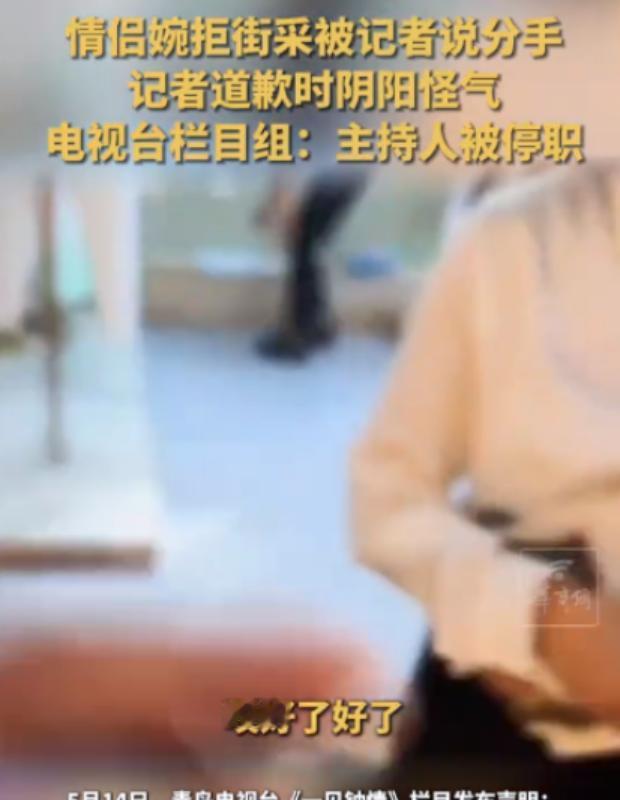 《青岛广播电视台》主持人赵某的处理结果来了,结局大快人心! 2024年5月13日,青岛一家商场里,一对情侣正牵着手逛服装店,突然被一个举着话筒的人拦住。 “您好,能聊聊520怎么过吗?”男生笑着摆手:“不用了谢谢,我们赶时间。” 话音刚落,话筒没移开,反而传来一句带着戏谑的反问:“哦,是分手了吗?”女生当场愣住,男生直接皱起了眉:“你这人怎么说话呢?” 这段15秒的视频当天就在社交平台传开了。 镜头里赵某嘴角那抹没藏住的冷笑,配上那句“分手了吗”,像根刺扎进网友眼里。 更让人不舒服的是,有人扒出赵某不只是电视台主持人,还在一家少儿播音培训机构当老师。 家长群里立刻有人截图:“教孩子‘沟通礼仪’的老师,自己却用语言戳人痛处?这课还怎么上?” 采访本是你情我愿的事。 翻遍《中国新闻工作者职业道德准则》,“尊重采访对象意愿”写得清清楚楚。 但赵某显然把手里的话筒当成了特权通行证,对方拒绝配合,就用恶意揣测来“反击”。 我觉得这种把话语权变成优越感的操作,早就偏离了媒体人该有的样子,毕竟,没人规定路人必须对着镜头微笑回答问题。 这事儿不是头一回发生。 去年长沙地铁里,有记者追着拒绝扫码的乘客念叨“扫一下怎么了,耽误不了几秒”;今年杭州街头,更有人被问“不买房就是穷吗”。 这些采访者好像忘了,街头不是演播厅,路人没义务配合你的工作。 连最基本的“被拒绝就离开”都做不到,谈何专业? 第二天下午,青岛广电的通报总算来了:暂停赵某一切工作,启动内部调查,责令公开道歉。 评论区里,点赞最高的留言是“停职该有,但得让他知道错在哪”。 可翻遍赵某的社交媒体,所谓的“道歉”更像在甩锅,“当时太累了,语气没控制好”,提都没提那句“分手了吗”对别人的伤害。 现在不少媒体机构的街头采访,全凭记者临场发挥。 其实央视早就有套规范:先亮明身份,说明采访内容,对方拒绝就礼貌说“谢谢,打扰了”。 要是都按这个流程来,哪会有这么多冲突?机构真该把职业伦理培训落到实处,别等出事了才想起补功课,毕竟信任这东西,碎了可不好粘。 这次能这么快有结果,得归功于那位随手拍视频的路人。 全民监督的时代,媒体的一言一行早就藏不住了。 与其担心被拍,不如主动守规矩,毕竟观众愿意停下来听你说话,靠的不是话筒的音量,是那份“你尊重我,我才愿意开口”的默契。 赵某那句“分手了吗”像面镜子,照出了某些媒体人的傲慢。 青岛广电的停职决定,更该成为行业的清醒剂:话筒拿在手里,分量从来不在音量,而在分寸。 下次街头采访,但愿每个举着话筒的人都记得:先学会说“谢谢,打扰了”,再靠近陌生人。