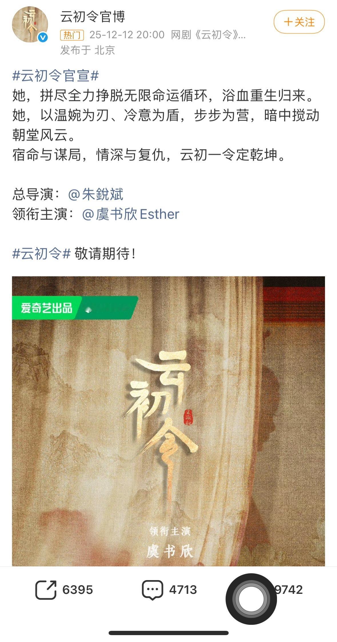 云初令官宣虞书欣电视剧《云初令》官宣虞书欣!单人官宣扛剧能力认可度好高期待解锁新角色 双轨空降