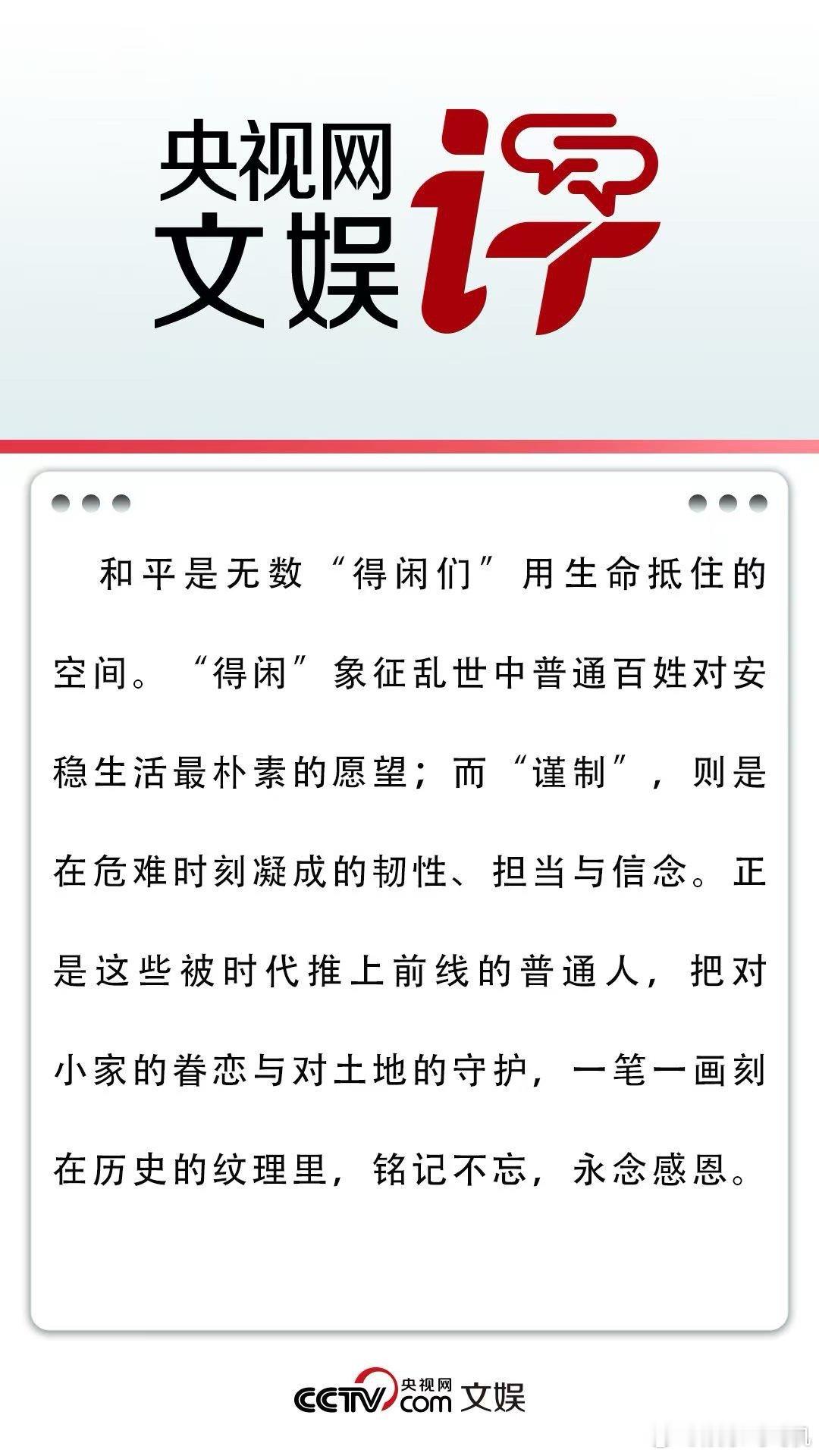 央视网文娱评得闲谨制 谁还没被《得闲谨制》的“家”字戳中!牌位是血脉的坚守,房门是最后的执念,从保小家到守大家,这波升华真的太有力量了!