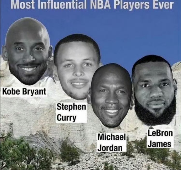 美媒晒NBA历史球员影响力总统山:乔丹、詹姆斯、科比、库里!篮球热力一夏