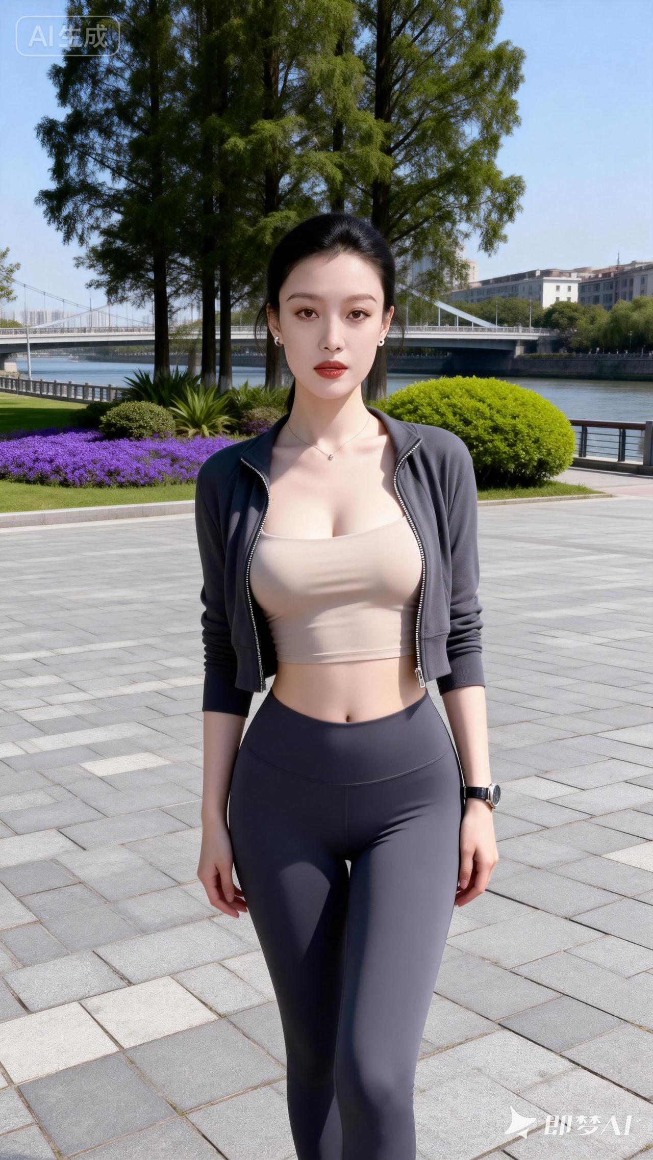 绿树荫中人影立,风华绝代似仙姿。
