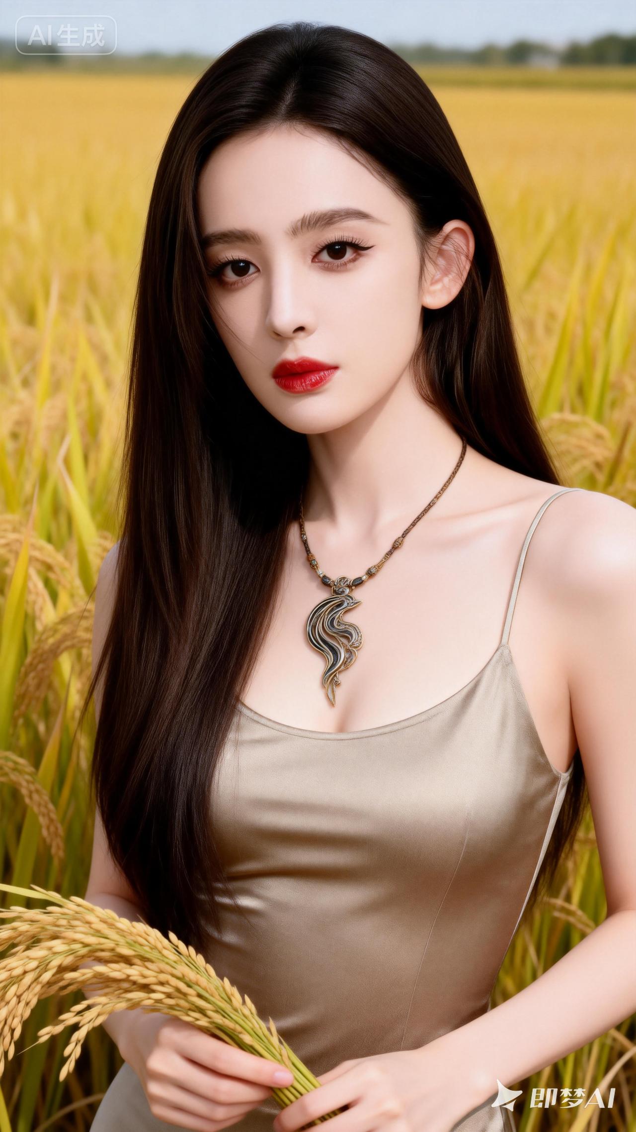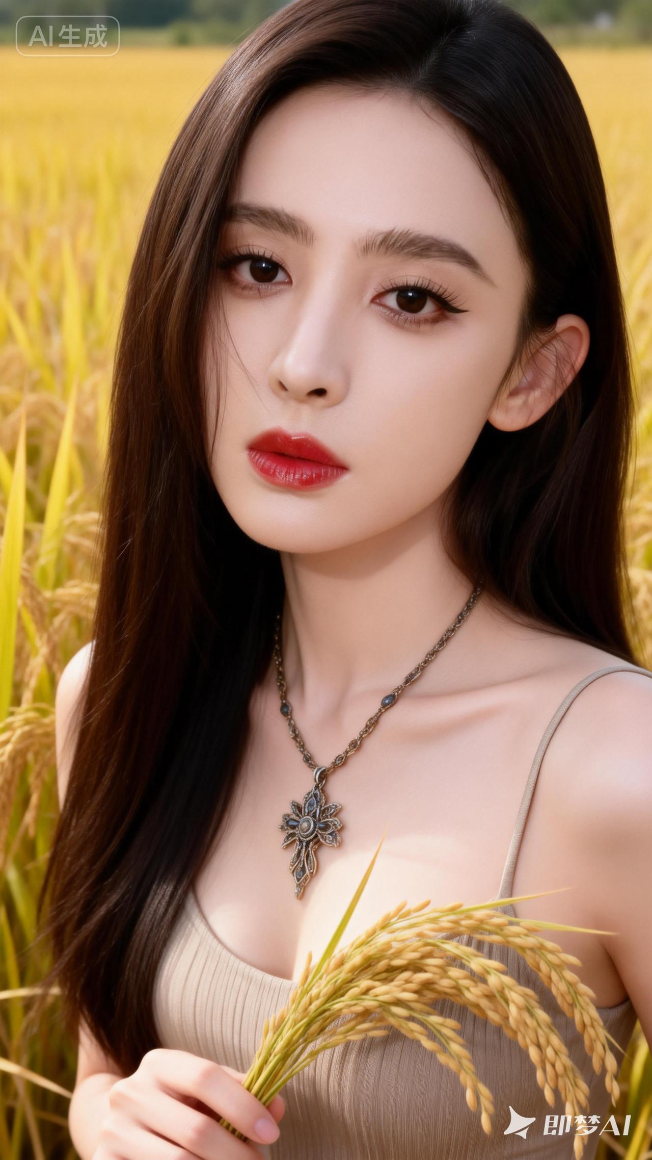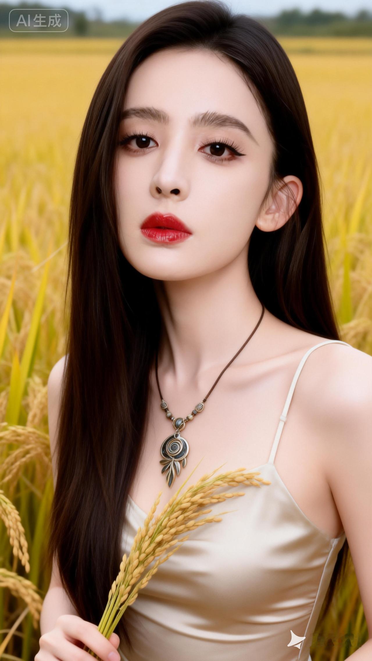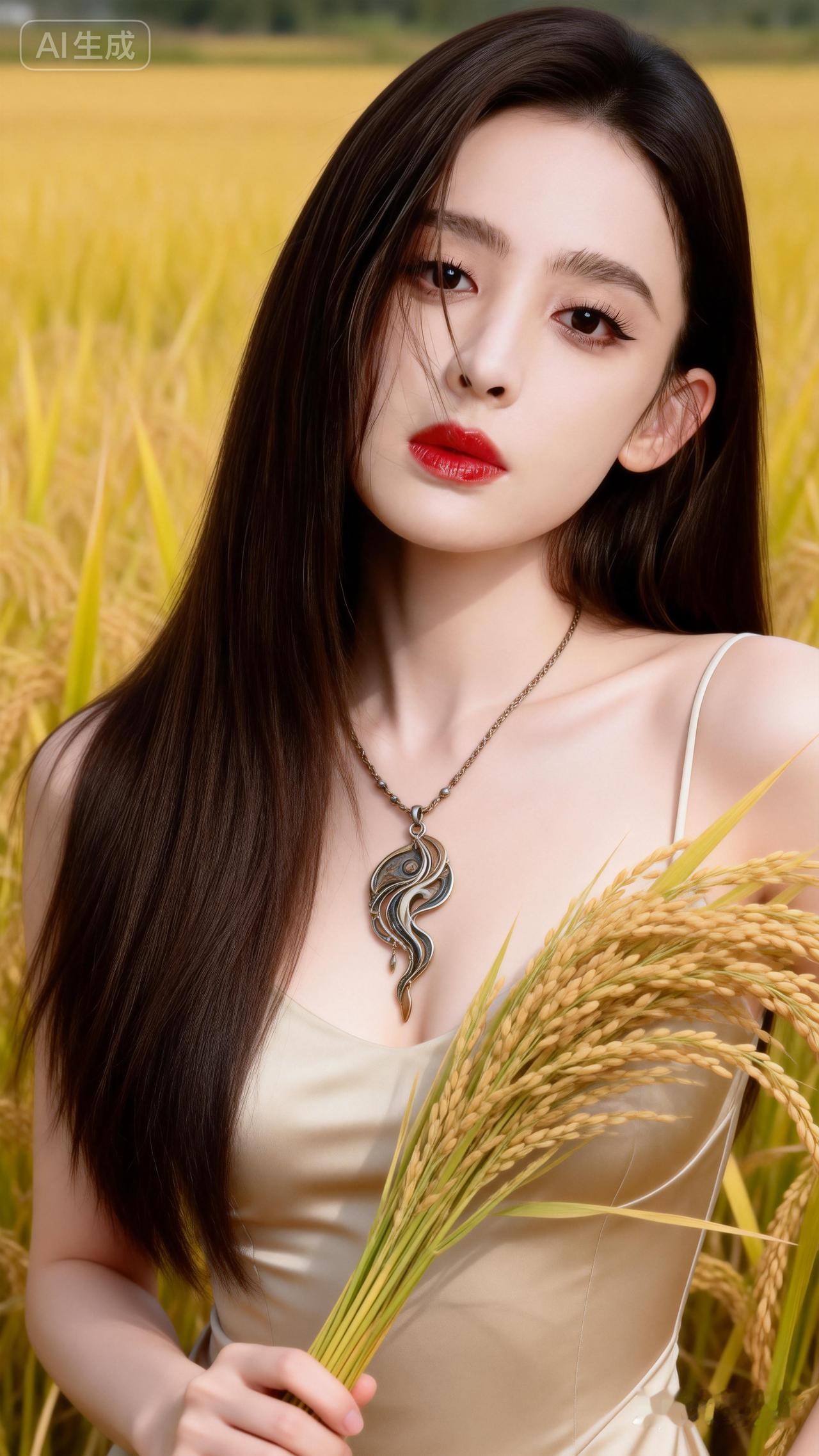 金秋田野,红唇佳人,丰收的喜悦