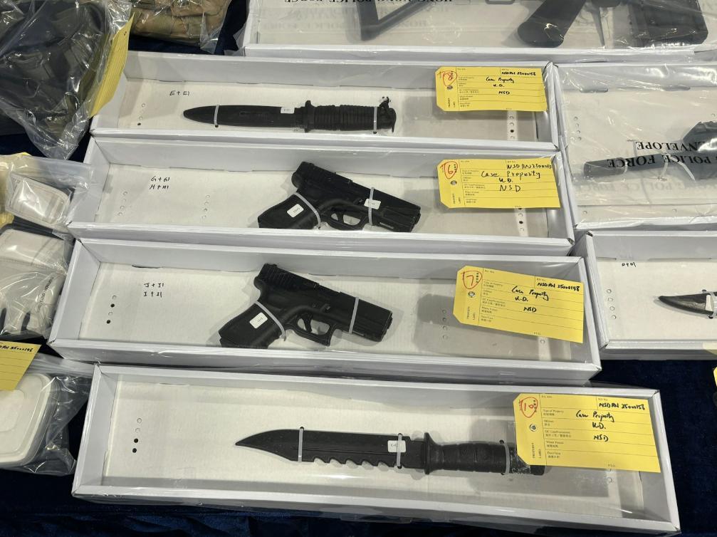 香港国安处今(12)日召开记者会,表示在今年较早收到市民举报,怀疑在新蒲岗一工厦内收藏武器,并且进行类似军事形式的训练。国安处经连串调查后,相信该团伙尝试组织反政府暴徒,为他们提供训练,内容包括枪械操练、军刀和格斗训练,无线电通讯技巧等。 国安处人员于昨晚(11日)采取拘捕行动,发现屋内有6名男子,其中一人正向其他人进行演示。管控在场人士及进行搜查后,检获5支长气枪、2支气手枪、5把仿制短刀、1把仿制长剑、搏击用具、印有黑暴分子常用口号等,以及怀疑是爆炸品的物品。经爆炸品处理人员检查后,相信该些怀疑爆炸品经过自行改装,有引线可以用作点燃,初步怀疑是采用低性能火药,目前正进一步检验其破坏力。另外,人员也搜出一部3D打印机,将会调查它是否曾被用作自制枪械或枪械元部件。 完成初步调查后,捕该的6名本地男子(20至25岁);之后再根据调查期间收集的证据,分别于屯门和油麻地拘捕另外3名男子(20至22岁)。被捕者分别报称任职文员、保安和食店职员等,部分人本身认识,“搭上搭”结识其他人,他们正被扣留调查。 据悉,涉案人士进行训练的房间重门深锁,以黑胶带遮盖全部窗户,非常隐蔽。有被捕者受查时,曾提及希望学习使用枪械短刀及格斗等技巧,待日后黑暴再临时攻击阻碍自己的人,包括警员及政府人员。